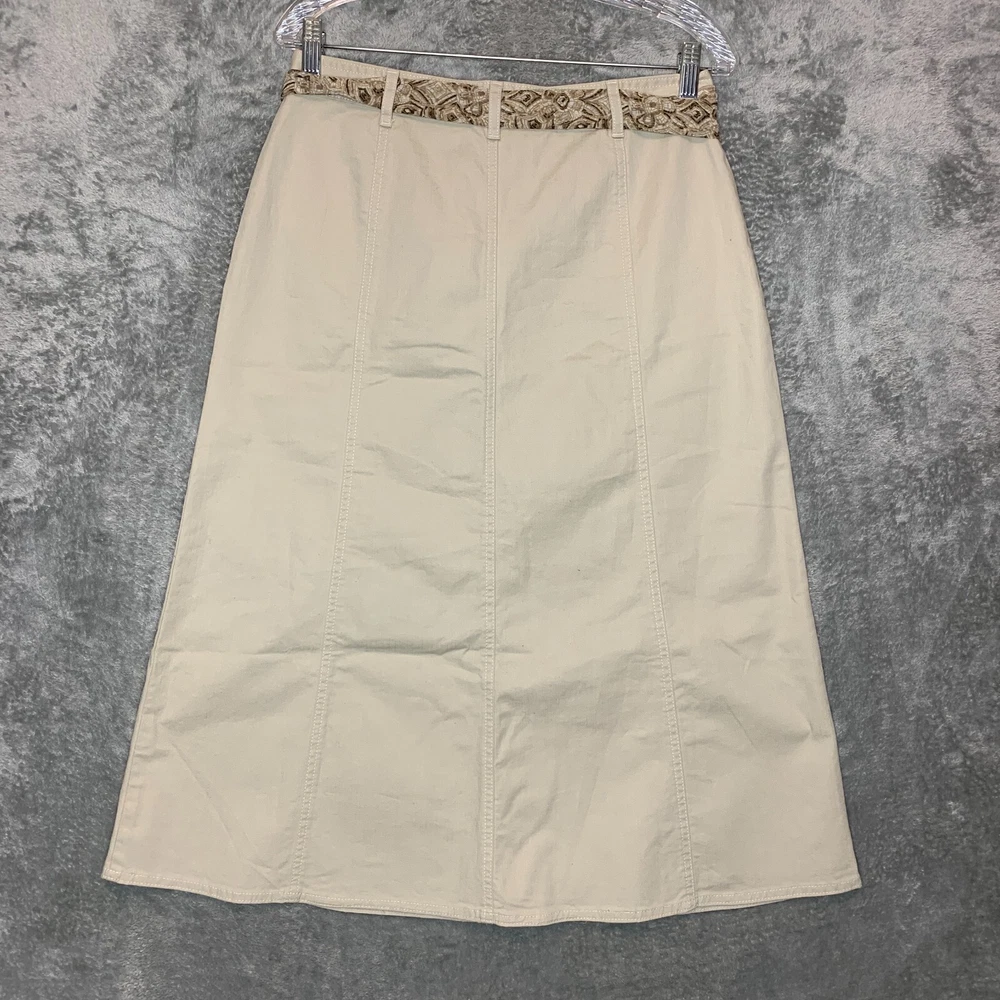 Theme: 90s, American, Classic, Modest, Neutral, Minimalist Personalize: No Color: Beige Fabric Type: Canvas Brand: Christopher & Banks Department: Women Type: Skirt Closure: Zip Garment Care: Machine Washable Occasion: Casual, Formal, Party/Cocktail, Travel, Workwear Pattern: Solid Size Type: Regular Style: A-Line Skirt Length: Midi Size: 8 Features: Pockets, Stretch Handmade: No