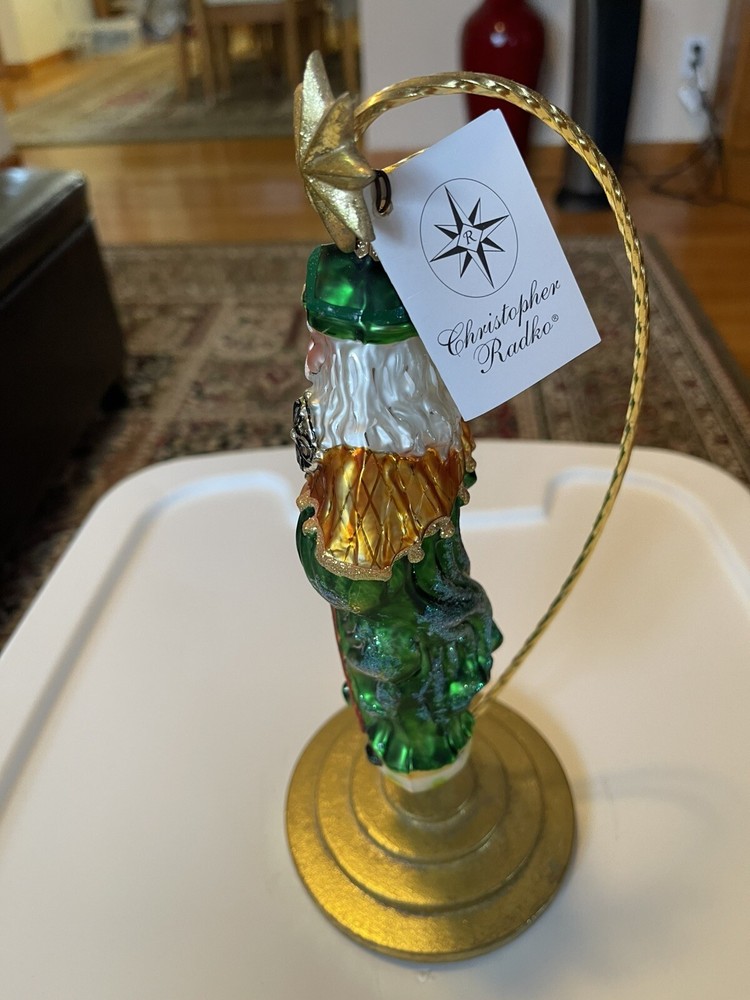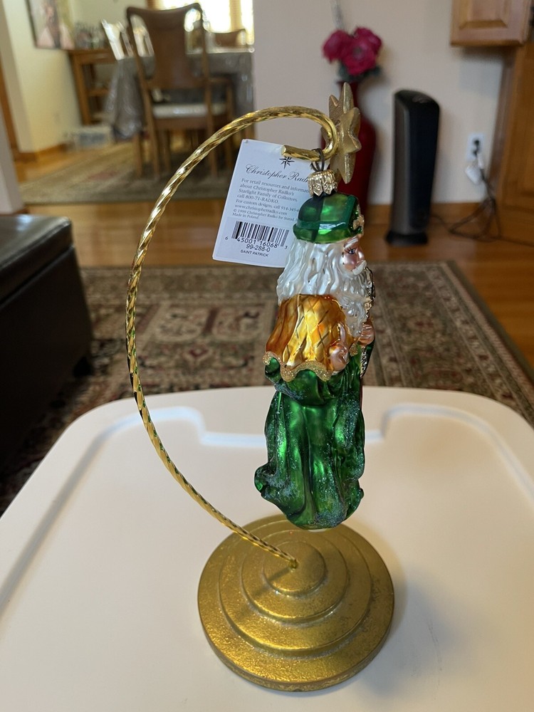 The Christopher Radko Saint Patrick Ornament is a collectible ornament from the Christopher Radko brand, known for their high-quality ornaments. This specific ornament is part of the Ornaments collection, making it a festive and decorative piece for the holiday season. With a design inspired by Saint Patrick, this ornament is sure to add a touch of charm and whimsy to any Christmas tree or holiday display. #99-288-0 “1999” 7” Stand not included