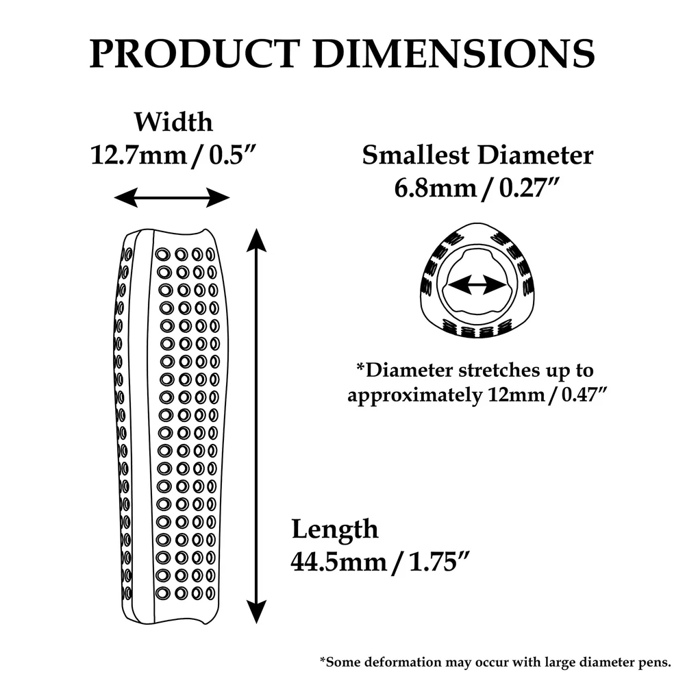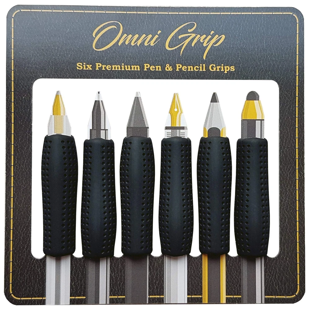 If you're one of the many adults who suffer from sore fingers and hand cramps when writing, there's finally a solution that's as comfortable as it is professional. Omni Grip is the only pen and pencil grip created specifically for adults. The ergonomic design provides all of the support with none of the childish and immature styles, colors, or concepts in order to meet the needs of the modern business professional. Omni Grip is slim and discreet, sleek, comfortable, and professional- making it the perfect work-appropriate solution for businessmen and women with sore fingers from spending their days writing. The writing cushion also prevents callouses and blisters from forming on your fingers, and decreases the chronic pain experienced by individuals with sensitive hands, wrists, or fingers. Add Omni Grip to your cart today and discover a more enjoyable, professional writing experience. **Pens not included. MAXIMUM COMFORT: Ergonomic, silicone grip provides supreme comfort and efficiency. Sleek, slim discreet pen grip is perfect for home or office, pens, pencils, and stylus. WRITING TOOLS NOT INCLUDED DISCREET AND PROFESSIONAL: Omni Grip is a writing aid and comfort cushion designed specifically for adults, instead of children and teenagers. Each grip offers key features desired by grown adults in the working and professional world, such as being sleek and not bulky, chic and discreet. Omni Grip offers great value, with each set including six black grips. PREVENTS CALLOUSES AND CHRONIC PAIN: Omni Grip is essential for those who spend some, part, or most of their day writing or sketching. Our innovative new design lets your hand and fingers rest against the grip without rubbing or pressing against the shaft of your pen or pencil, preventing calluses or blisters. Omni Grip is also ideal for individuals with chronic pain such as arthritis or tendonitis, or sensitivity in their hands, wrists, or fingers. TWO-IN-ONE DESIGN: Omni Grip offers two completely different grip experiences depending on which way it's used. Choose between maximum cushioning or slim profile, and swap on the fly. UNIQUE SHAPE: Omni Grip's profile is a combination of a circle and triangle: a Rolling Triangle. This ergonomic shape allows for maximum comfort and an effortless grip, regardless of your writing style. (PENS NOT INCLUDED) *PATENT PENDING*