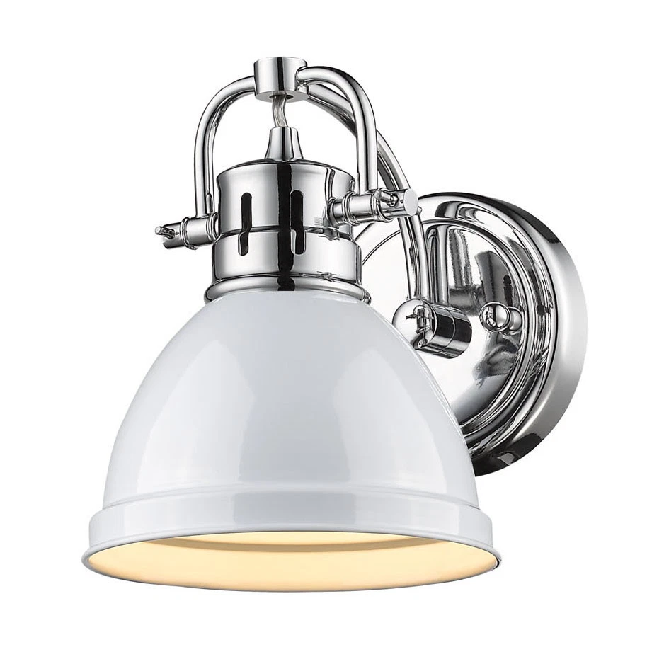 Powered by Frooition All Categories Golden Lighting 3602-BA1-CH Duncan Single Light 9" Tall Bathroom Sconce Overview Item Description Features Durable steel construction Comes with a steel shade (1) 100 watt maximum medium (E26) bulb required Capable of being dimmed with compatible dimmable bulbs (not included) Rated for damp locations Covered under Golden Lighting's 1 year limited warranty Dimensions Height: 8-1/2" Width: 6-1/2" Extension: 8-1/4" Product Weight: 1.59 lbs Wire Length: 8" Shade Height: 4-1/2" Shade Width: 6-1/2" Shade Depth: 6-1/2" Backplate Width: 4-7/8" Backplate Depth: 1" Electrical Specifications Max Wattage: 100 watts Number of Bulbs: 1 Max Watts Per Bulb: 100 watts Bulb Base: Medium (E26) Bulb Included: No Why Choose BuildInc? OUR PROMISE TO YOU About Us At Build, we promise to provide the best selection we can, most competitive pricing, and unmatched customer service. Our store has quality home improvement products from trusted manufacturers like Moen, American Standard, Delta, Kraus, Kichler, Progress Lighting, Schlage, Kwikset, Baldwin, Broan, NuTone, Air King, and Rev-A-Shelf. With over 200,000 home improvement products for you to choose from, we have just what you need to get your project done. Fast & Free Shipping We promise to make it our priority to get you your items as fast as we can. We ship from 440 warehouses around the country, ensuring that your product will get to you as soon as possible. We know you're eager to get your hands on your new purchase, we would be too. As a bonus, most items ship for free. Returns We are happy to accept returns of unused or defective items for a refund within 30 days from the date of delivery. For returns outside 30 days, please contact our Customer Service team to go over our options. For full details, please view the Shipping and Payments tab above. To initiate a return simply go to the eBay Returns Portal and submit a return request. We ask that all items be returned with all original components via a traceable method. Once your return is received and processed, we will quickly get your refund or replacement issued. If for any reason you are unsatisfied with your purchase or for product or warranty questions, please contact Customer Service team for assistance. More Items! View more great items! About Us | Shipping | Returns | Contact Us | FAQ | Collections | Special Offers! Powered by Frooition Frooition Frooition | No-js Template | eBay design, eBay store design, eBay shop design, eBay template design, eBay listing design (ver:froo_no_js) This listing is currently undergoing maintenance, we apologize for any inconvenience caused.