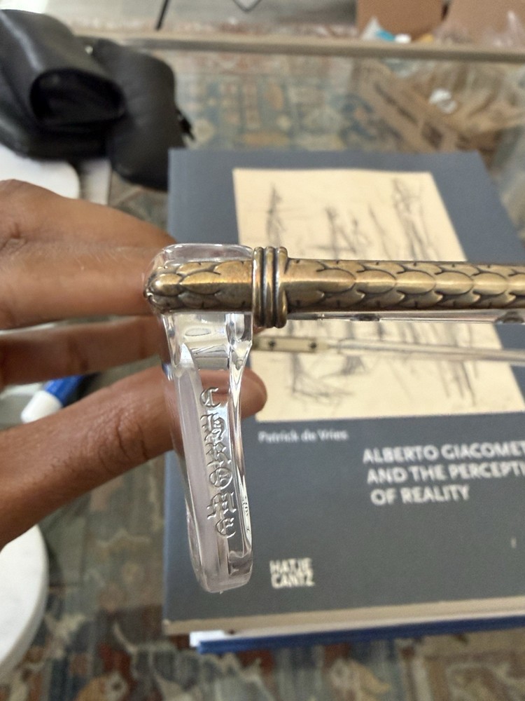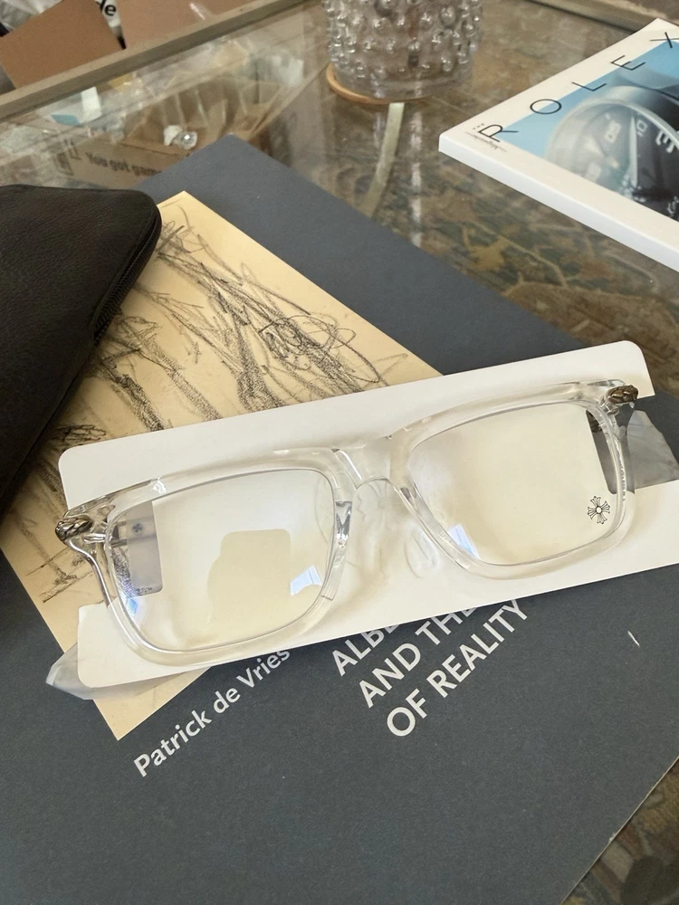 The product is a pair of Chrome Hearts Little Dinger Crystal Glasses. These glasses are designed for men and feature a clear frame with a square style. Super hard to get. Purchased directly from my local optician that is a Chrome Hearts AD. Comes with what’s pictured, leather case and chrome hearts cloth. Ask any questions prior to purchasing. All sales are final. 100% authentic.