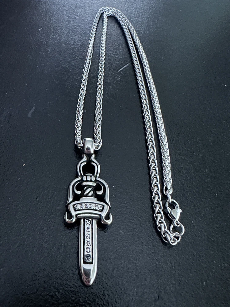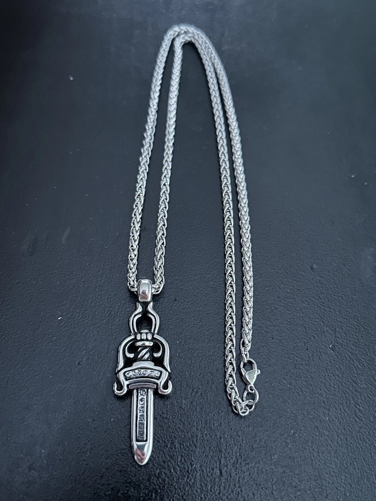 Chrome Hearts STYLE Dagger Pendant Intricate design with same design on both sides Pendant measures 6” x 2” (15mm x 5mm) Rope necklace measures 27” x 5mm with lobster clasp fastening Stainless steel