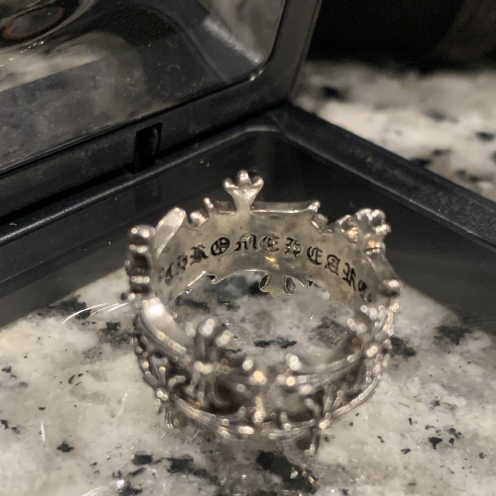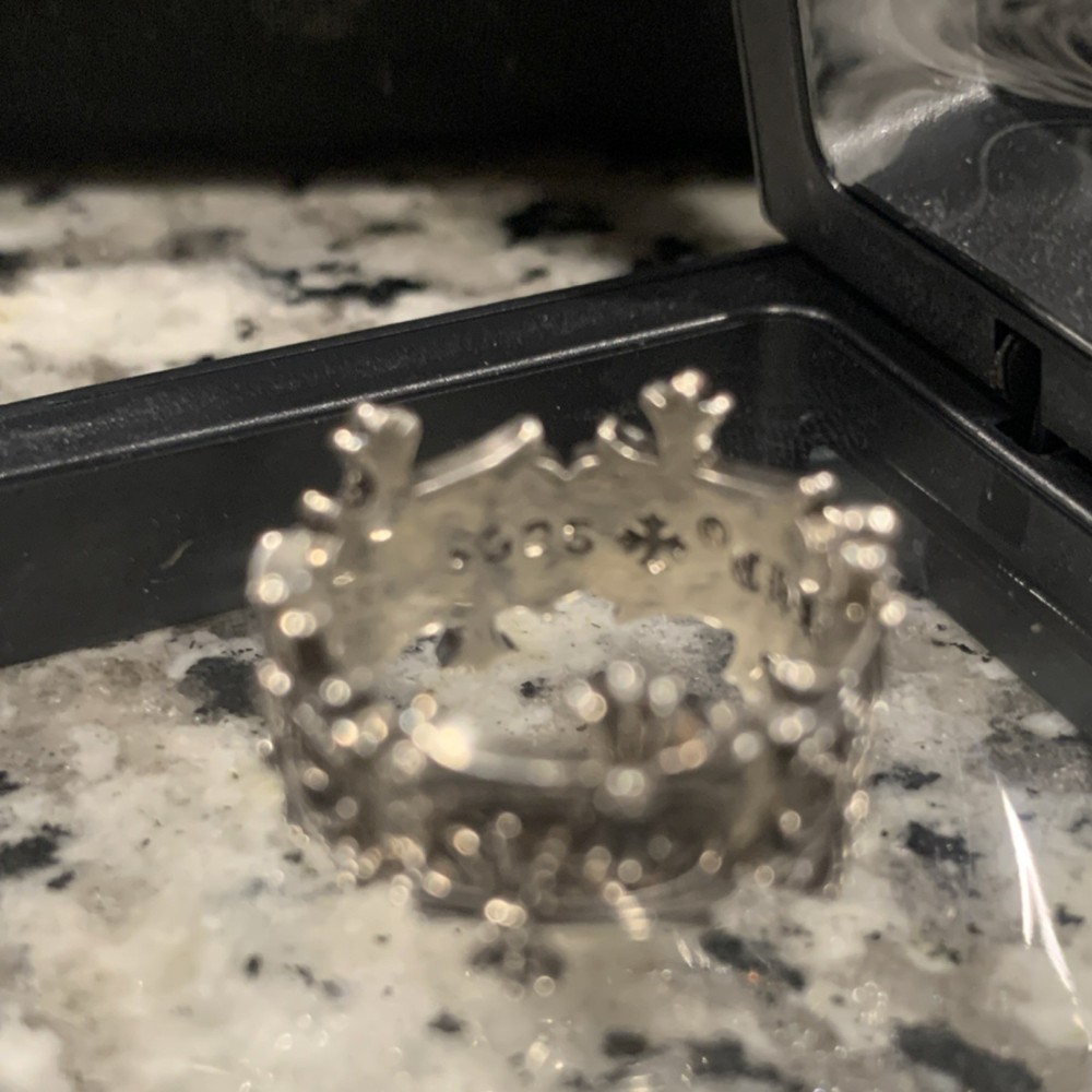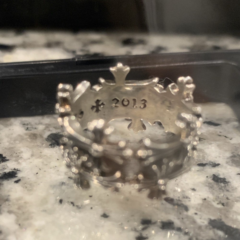 Chrome Hearts Sterling Silver Crown Band Ring Size 10 Signed Art Theme