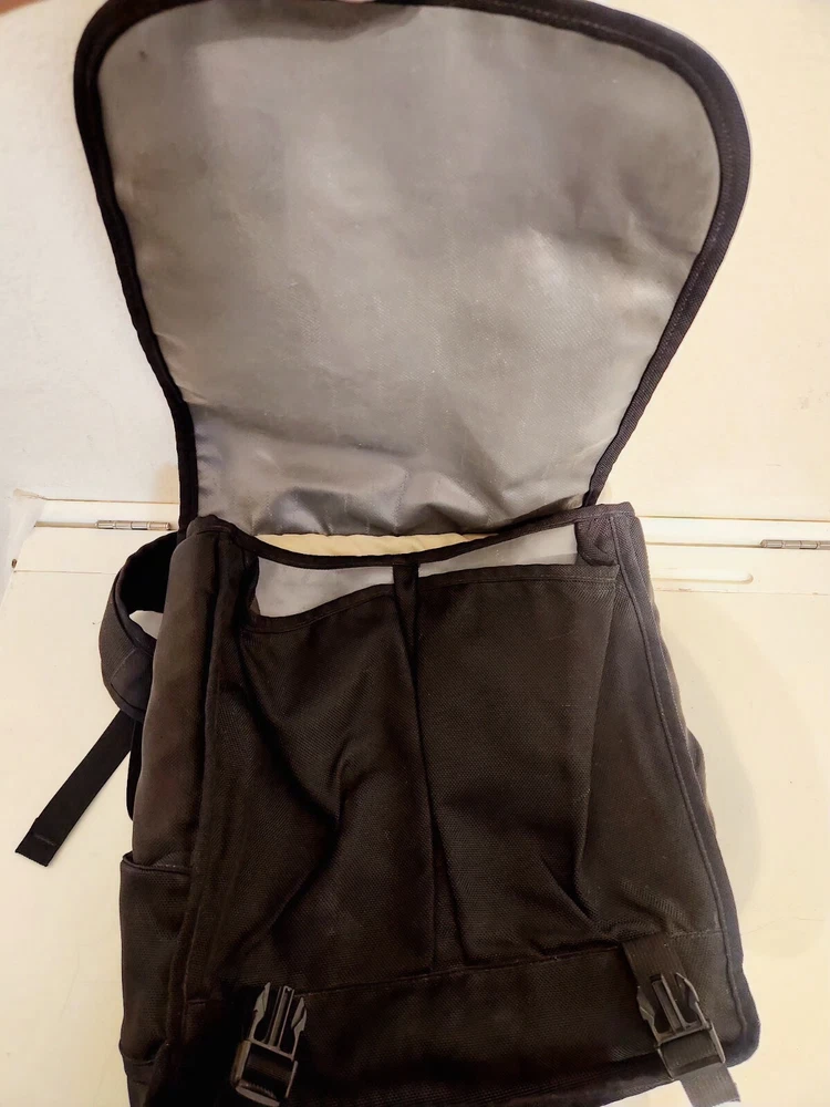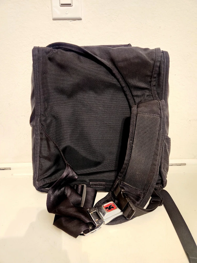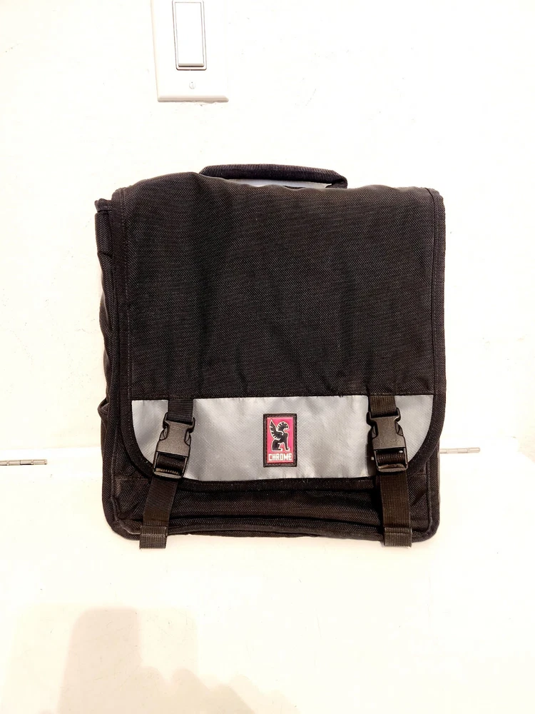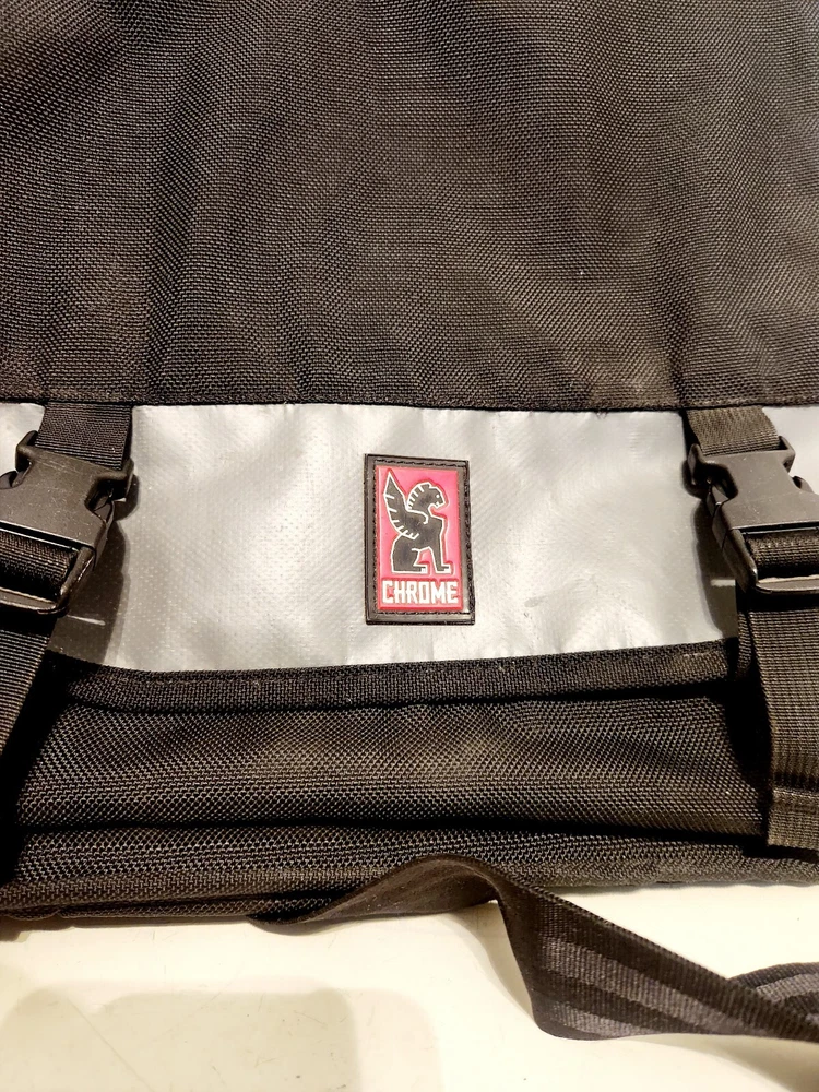 Chrome Industries Soma Single Strap Sling Messenger Bag. Pre-owned. Good condition. Black/Gray. All zippers/buckles function properly. Left shoulder sling. Approximately 16"x 13"x 5.5"