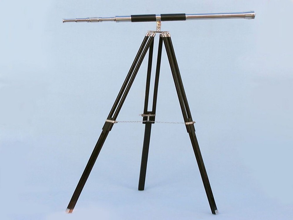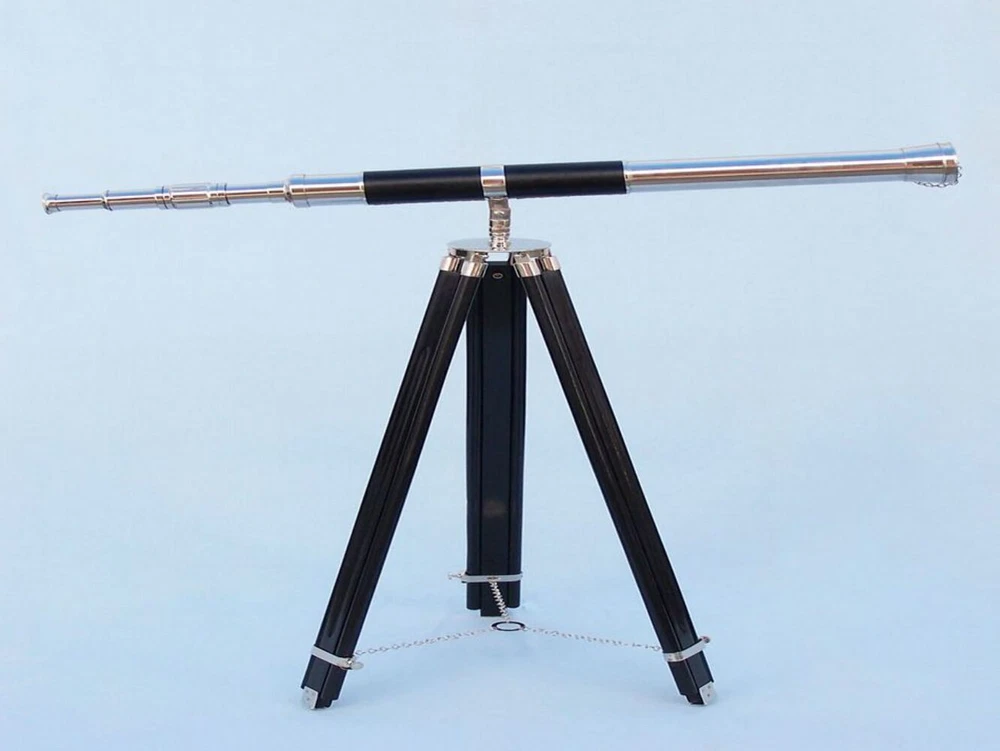 Admirals Floor Standing Chrome with Leather Telescope 60" Free USA Shipping Overall Dimensions 32" L x 25" W x 60" H This Hampton Nautical Admiral's Floor Standing Chrome with Leather Telescope 60" is a beautiful, 100% chrome, refractor telescope mounted on a wooden tripod. The perfect gift for the nautical explorer, this telescope is a fully functioning nautical masterpiece that adds class and sophistication to any room. The main scope is polished chrome wrapped in leather, which shines beautifully when placed in the sunlight. Focusing is accomplished by adjusting the eyepiece ring on the telescope tube, with up to 15x magnification. A removable chrome cap, connected by a chain, protects the objective lens. The wooden tripod stand features smooth, polished round legs, each with chrome fittings and a screw release to let you adjust the height. A chrome chain holds the three wooden legs together to maintain the telescope's position. 15X Magnification Polished chrome telescope body; leather wrapped Glass optics for a clear view (not plastic lenses) Fully functional telescope focuses and magnifies Sturdy wooden tripod supports telescope when standing Admirals Floor Standing Chrome with Leather Telescope 60" Free USA Shipping Overall Dimensions 32" L x 25" W x 60" H This Hampton Nautical Admiral's Floor Standing Chrome with Leather Telescope 60" is a beautiful, 100% chrome, refractor telescope mounted on a wooden tripod. The perfect gift for the nautical explorer, this telescope is a fully functioning nautical masterpiece that adds class and sophistication to any room. The main scope is polished chrome wrapped in leather, which shines beautifully when placed in the sunlight. Focusing is accomplished by adjusting the eyepiece ring on the telescope tube, with up to 15x magnification. A removable chrome cap, connected by a chain, protects the objective lens. The wooden tripod stand features smooth, polished round legs, each with chrome fittings and a screw release to let you adjust the height. A chrome chain holds the three wooden legs together to maintain the telescope's position. 15X Magnification Polished chrome telescope body; leather wrapped Glass optics for a clear view (not plastic lenses) Fully functional telescope focuses and magnifies Sturdy wooden tripod supports telescope when standing × × × × × × × × × Buy now and save! Shipping info Click the Shipping & Payments tab above the listing description for more info FREE Shipping Click the Shipping & Payments tab above the listing description for more info! Additional delivery notes PICK UP OPTION Sorry, our items are NOT available for pick-up. PAYMENT Immediate payment is required upon selecting "Buy It Now" or upon checking out through the cart. We accept payment via U.S. PayPal accounts and all Major Credit Cards, Debit Cards & Google Pay. We are legally required to collect sales tax in those states and localities where we maintain a physical presence (nexus). The applicable amount of sales tax charged to an order will be calculated based on the shipment destination's state and local sales tax laws. Thank you for shopping with us on eBay! Additional Information No additional information at this time Ask seller a question You might also like FL/AL Small Boat/Kayak: Perdido Bay to Bon Secour Bay-BSP322 Small Shark Identification Chart SK502 Large Fishes of the Gulf of Mexico and Florida Identification Chart-FG504 Large Texas Corpus Christi Bay Area-CC55 Large Contact To contact our Customer Service Team, simply click the button here and our Customer Service team will be happy to assist. Ask seller a question © BC Nautical Shipping & Payments Shipping is FREE for this item Payment Accepted Payment Methods Immediate payment is required upon selecting "Buy It Now" or upon checking out through the cart. We accept payment via U.S. PayPal accounts and all Major Credit Cards, Debit Cards & Google Pay. We are legally required to collect sales tax in those states and localities where we maintain a physical presence (nexus). The applicable amount of sales tax charged to an order will be calculated based on the shipment destination's state and local sales tax laws. Thank you for shopping with us on eBay! Returns Returns are accepted Items must be returned within 14 days of the auction ending Buyer will pay for return shipping. eBay integration by