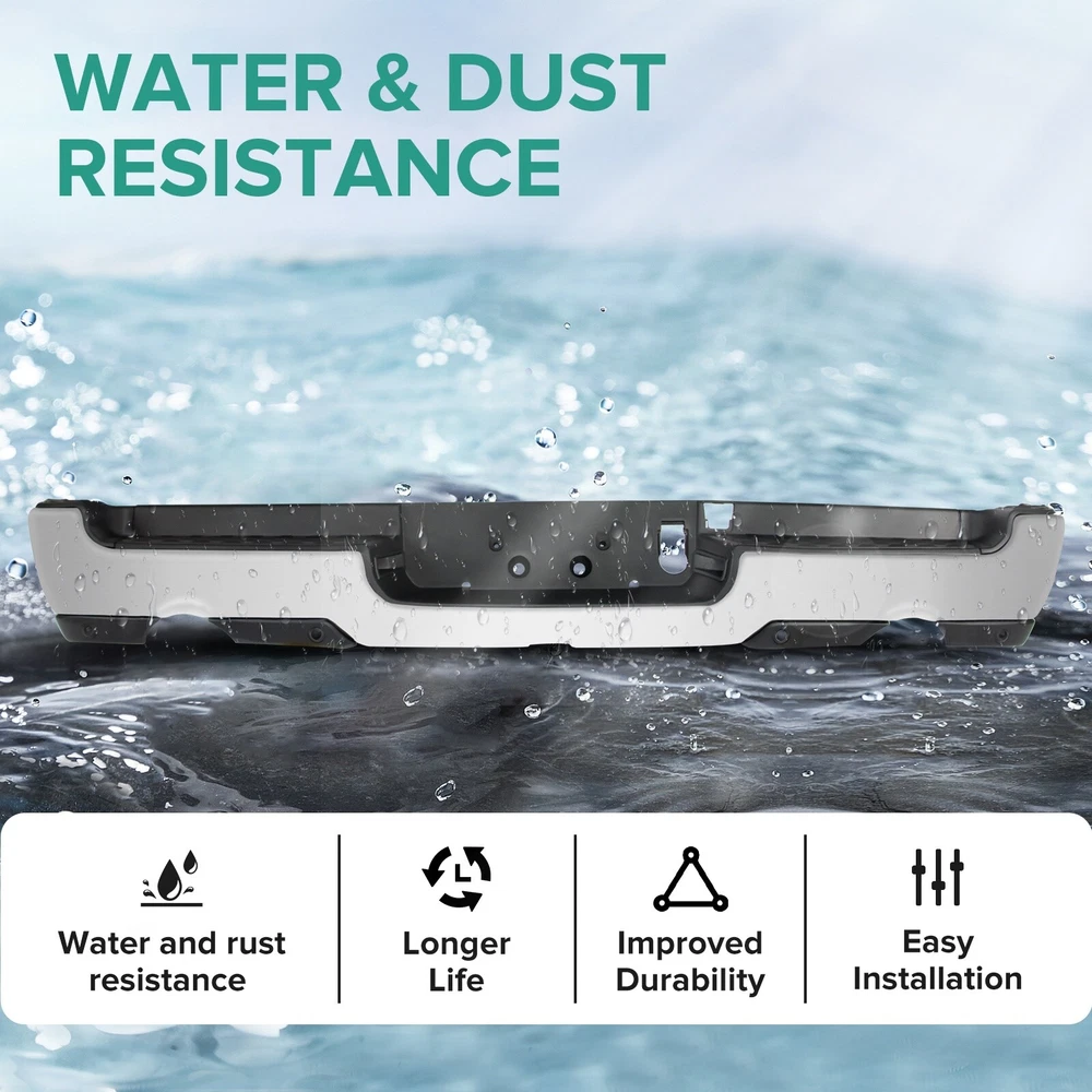 Specification Color: Chorme Dual Exhaust: With Dual Exhaust Sensor Holes: With parking aid sensor holes Finish: Chorme Material: Steel Type: Rear Bumper Placement on Vehicle: Rear Fitment Type: Vehicle Specific OE/OEM Part Number: 68404443AA, 68404443AB Partslink Number: CH1103147 Installation Instruction: Not Included Fitment 2019-2023 Ram 1500 Features & Benefits Product Description: 【FITMENT】Our Front Bumper is specifically designed to be compatible with 2019-2023 RAM 1500 models. Please note that it is ONLY compatible with models featuring Dual Exhaust + with Rear Parking Assist Sensor. 【Interchange Part number】This bumper can replace the following part numbers: 68404443AA, 68404443AB, CH1103147. 【Excellent Performance】Featuring non-slip steps, this Dodge Ram rear bumper ensures a safe and convenient entry and exit for your family. More than just a practical addition, it can absorb and slow down external impacts, protecting your vehicle and passengers during collisions and reducing the risk of injury. 【Quality Material】Constructed from high-quality steel and lightweight ABS plastic, this rear bumper offers exceptional durability against wear and rust. No additional drilling or cutting is required, and it also adds a touch of style to improve the overall aesthetics of your car. 【Easy Installation】Our front bumper is easy and quick to install as a direct replacement. The package includes: 1X Rear bumper, along with the necessary mounting brackets and screws. Please note that this product is intended for placement on the rear of your vehicle.