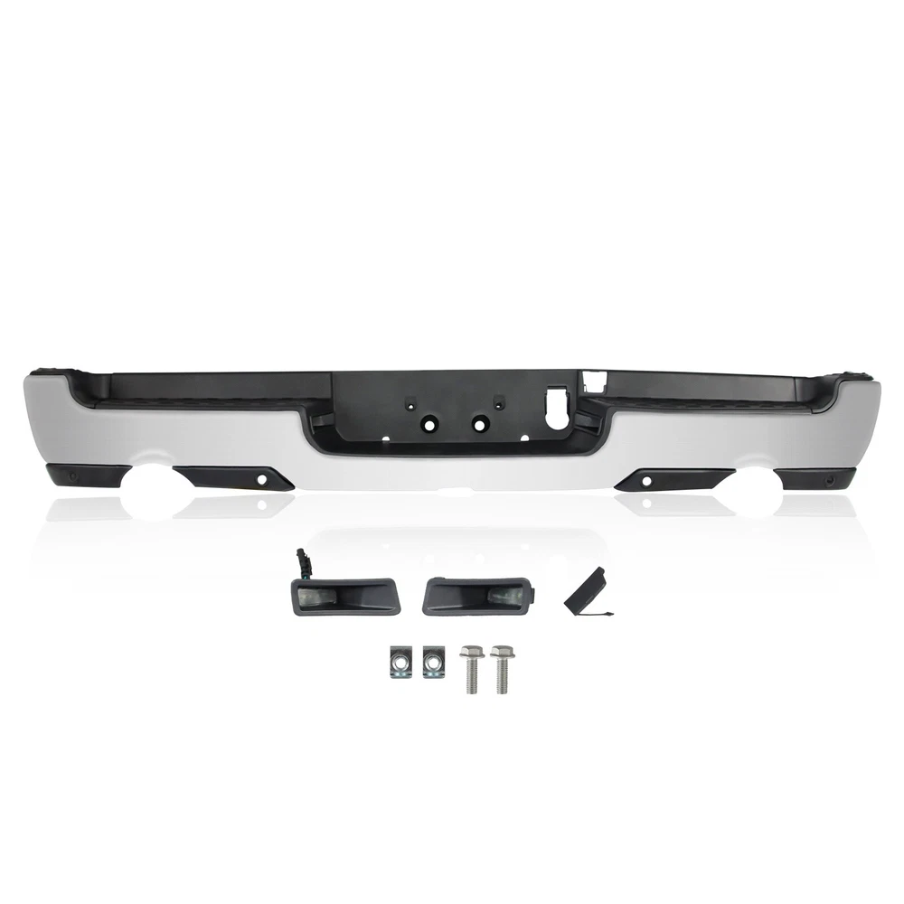Specification Color: Chorme Dual Exhaust: With Dual Exhaust Sensor Holes: With parking aid sensor holes Finish: Chorme Material: Steel Type: Rear Bumper Placement on Vehicle: Rear Fitment Type: Vehicle Specific OE/OEM Part Number: 68404443AA, 68404443AB Partslink Number: CH1103147 Installation Instruction: Not Included Fitment 2019-2023 Ram 1500 Features & Benefits Product Description: 【FITMENT】Our Front Bumper is specifically designed to be compatible with 2019-2023 RAM 1500 models. Please note that it is ONLY compatible with models featuring Dual Exhaust + with Rear Parking Assist Sensor. 【Interchange Part number】This bumper can replace the following part numbers: 68404443AA, 68404443AB, CH1103147. 【Excellent Performance】Featuring non-slip steps, this Dodge Ram rear bumper ensures a safe and convenient entry and exit for your family. More than just a practical addition, it can absorb and slow down external impacts, protecting your vehicle and passengers during collisions and reducing the risk of injury. 【Quality Material】Constructed from high-quality steel and lightweight ABS plastic, this rear bumper offers exceptional durability against wear and rust. No additional drilling or cutting is required, and it also adds a touch of style to improve the overall aesthetics of your car. 【Easy Installation】Our front bumper is easy and quick to install as a direct replacement. The package includes: 1X Rear bumper, along with the necessary mounting brackets and screws. Please note that this product is intended for placement on the rear of your vehicle.