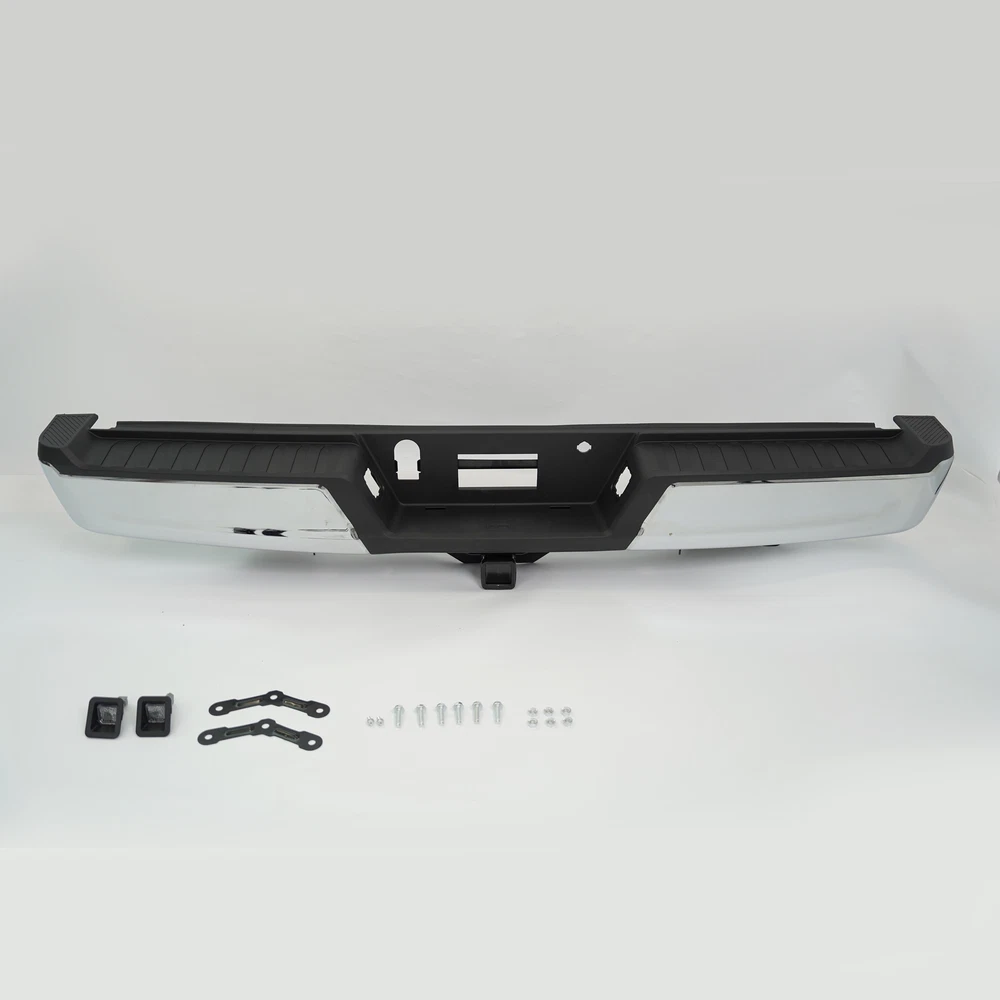 Fitment 2021-2023 Ford F-150 For Models Without Park Sensors For Models With Tow Package Details Placement on Vehicle:Rear Color:Chrome Material:Steel Package Includes: 1*Rear Bumper Assembly On Nov 28, 2024 at 04:40:44 PST, seller added the following information: On Nov 28, 2024 at 23:19:03 PST, seller added the following information: On Dec 8, 2024 at 17:52:19 PST, seller added the following information: On Dec 8, 2024 at 22:09:05 PST, seller added the following information: