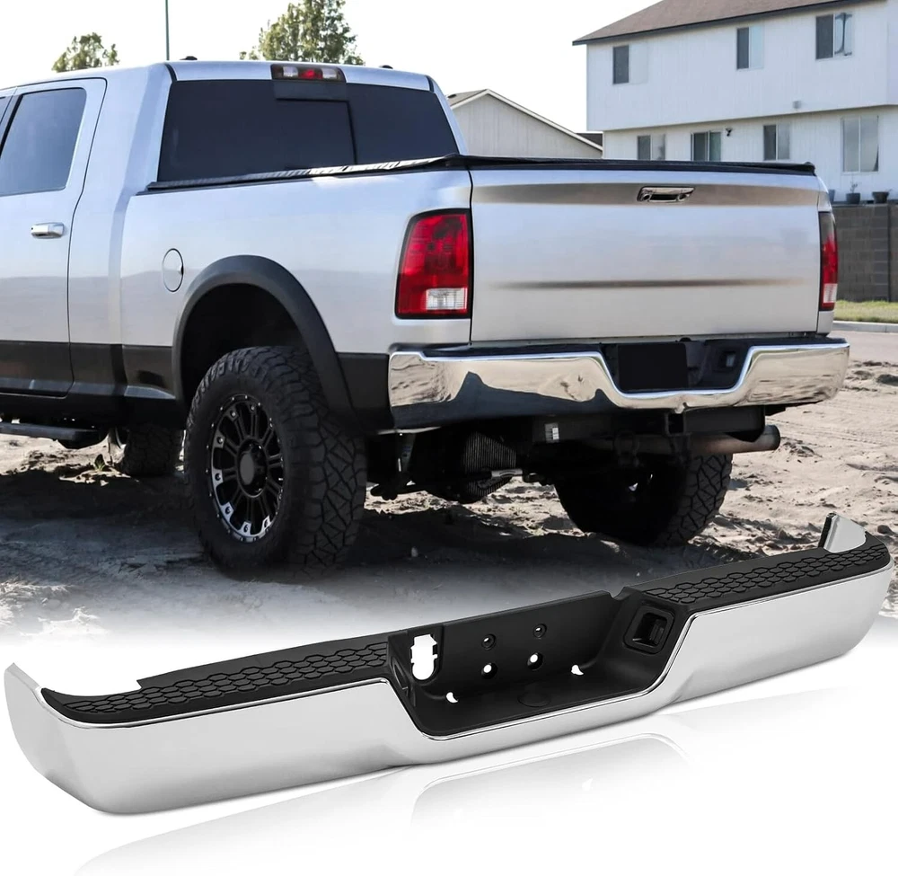 Specification Installation Instruction: Not Included Manufacturer Warranty: 1 Year Condition: New Package Weight(lbs): 39.02 Package Dimensions(LengthxWidthxHeight:inch): 77.76x16.93x12.60 Item Weight(lbs): 36.82 Item Size(LengthxWidthxHeight:inch): 77.76x16.93x12.60 Surface Finish: Chrome Description: 1. No cutting or drilling. Easy bolt-on installation with no relocation required. Instruction is not included. Professional installation is highly recommended. 2. Finished chrome process enhanced by pre-treatment to provide extreme resistance against rust Vent Hole: W/O Vent Hole Package Include: 1 X Rear Step Bumper, License Plate Lights, Bolts, Mounting Hardware, Screws Type: Direct Replacement Placement on Vehicle: Rear Material: Heavy Duty Steel & PP Color: Chrome,Black Parking Aid Sensor Hole: NO Fitment 2009-2010 Dodge Ram 1500 2011-2018 Ram 1500 2019-2019 Ram 1500 Classic Description 1. No cutting or drilling. Easy bolt-on installation with no relocation required. Instruction is not included. Professional installation is highly recommended. 2. Finished chrome process enhanced by pre-treatment to provide extreme resistance against rust and wear. 3. SUV/Car/Truck rear bumpers protect your car from rocks, tree roots and other obstacles. Save your a big fix fee in the body shop. 4. Anti-corrosion process to provide extreme resistance against rust and wear, prolong your rear step bumper service life. 5. Manufactured from heavy duty steel and high grade PP. Non-slip textured step pad, guarantee your standing stability. 6. Corner steps made from high quality steel and plastic for maximum strength and durability.