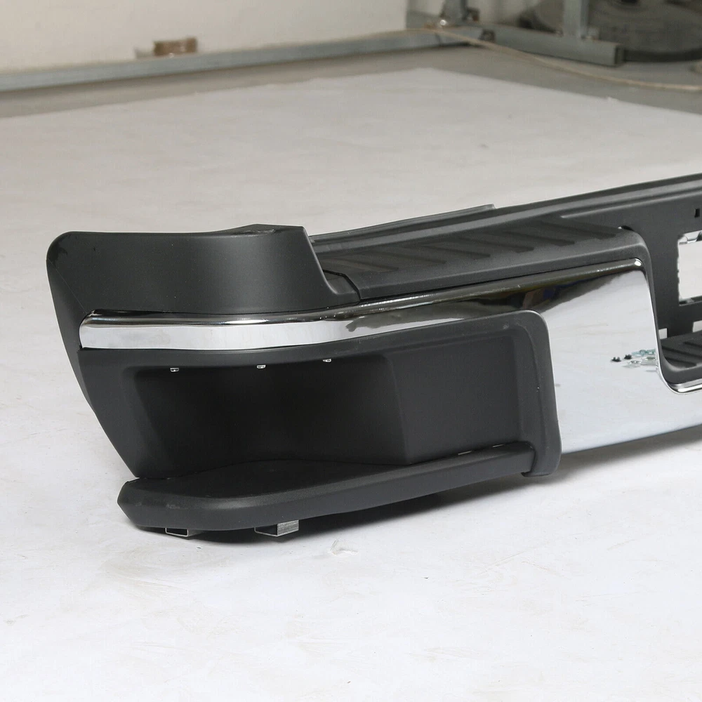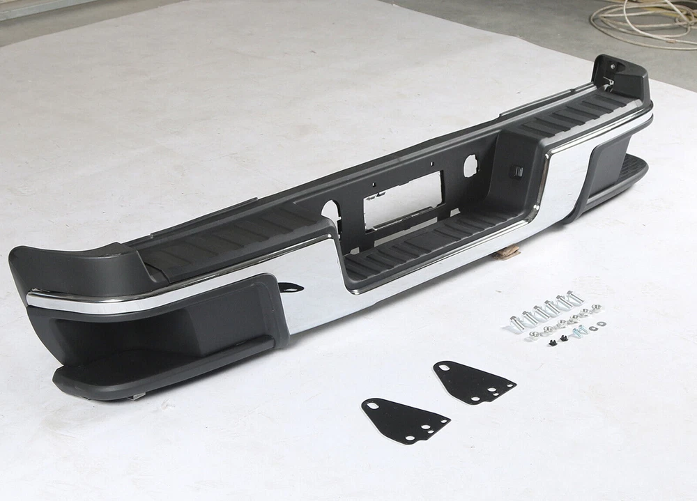 Rear Step Bumper Assembly Fit for 2015-2022 Chevy Colorado GMC Canyon,Chrome Steel Bumper w/o Parking Sensor Holes GM1103181 Product Description About this item Our chrome rear bumper(w/o parking assist sensor holes) fit for 2015-2022 Chevy Colorado GMC Canyon.Not fit for 2017-2019 Colorado ZR2 Models. Made from heavy duty steel & plastic with chrome surface,which prevent corrosion and improves wear resistance. Unmatched fit.Provide adequate protection for the rear of your vehicle. Replace your original rear bumper directly, no modification required. No Installation Guide or Instruction Included.Professional Installation is Highly Recommended. Chrome Rear Step Bumper Assembly Fit For Chevrolet Colorado GMC Canyon 2015-2022(Does not Fit 2017-2019 Colorado ZR2 Models) Features: 100% Brand new. High quality. Brings new look and protection to your vehicle at the same time. Made of strong and light weight ABS plastic and steel. A great upgrade for your vehicle. Specifications: Material: Steel,ABS material Color: Black,silver Surface Finish: Chrome Placement on Vehicle: Rear Fitment Type: Direct Replacement Package Include: 1×Rear Bumper 2×Brackets 2×License Plate Lights 1×Bag of Installation Accessories Notes: Not Compatible with Rear Object Sensor Model Installation Manual Is Not Included Professional Installation Is Highly Recommended Please make sure the item if they match your car before you purchase. Payment Delivery Details Return Feedback Contact us Payment We accept payment by any of the following methods: Delivery Details Shipping Time Your item will ship within 3 days (Mon-Fri) of your cleared payment. Items will be shipped to the shipping address you specify via Paypal only. We are NOT able to change the shipping address once payment has been made. A tracking number will be provided once your item has shipped. Domestic Buyers No shipping to PO BOX and APO addresses. No shipping to PR, AK, HI. International Buyers International buyers please note: Import duties, taxes and charges are not included in the item price or shipping charges. These charges are the buyer's responsibility. Please check with your country's customs office to determine what these additional costs will be prior to bidding/buying. Return All returns must have RMA number. Returns with no RMA number will be avoided! 1. Changed your mind and don't want the item anymore? We back our products with a 30-DAY SATISFACTION GUARANTEE! (Item must be in the original condition as it was received. 30 Days Refund, 30 Day Replacement.). Brand New items will have 30 days warranty or replacement policy. 2. Restocking fees will be charged ONLY on Brand New items. 3. Defective/Dead items will be fully refunded or replaced after matching the serial number with the one in our records. 4. Mobile phones and tablets MUST be restored to factory setting. 5. If your order arrives incorrect or the package is damaged in result of a carrier company, you must notify us within 4 days of receipt. Defective items will be credited only after matching the serial number with the one in our records. We are aware of all fraud cases and have all the items details in our records. 6. If there is a quality issue or malfunction with the product, we strongly suggest you to contact the original manufacturer. 7. Any item needed to be returned must be securely packaged, insured and shipped with tracking for safety. We cannot be responsible for lost damaged packages. We carefully inspect returned items upon receipt before any possible refunds, credits, or exchanges. Feedback Customer satisfaction is our top priority. Please give us a chance to resolve any issues before posting a feedback. If you have any problem with your order, please contact us and we will do our best to make you satisfied. Contact us Business Hours: Monday - Friday : 9:30AM – 5:30PM Eastern Standard Time. Saturday, Sunday Closed. For any questions or concerns, please feel free to contact us!