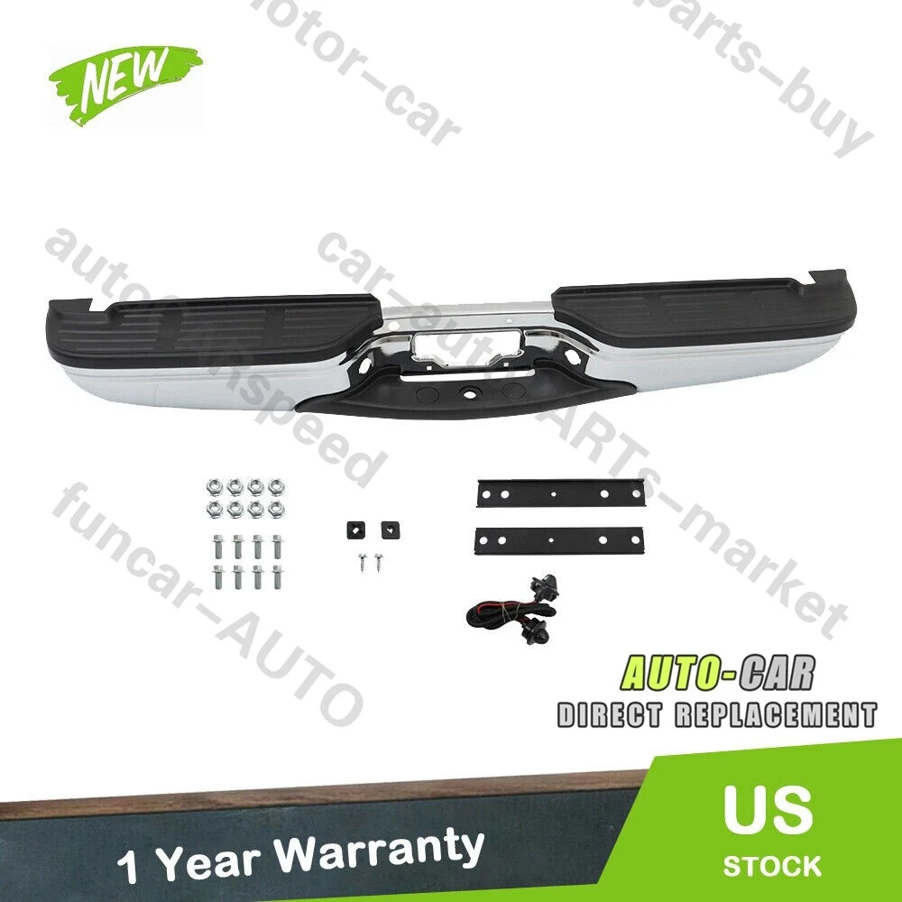 Specifics and features: Type:Step Bumper Condition:100% Brand New Color:Chrome OE Number:1C3Z17906DA-PFM Material:Carbon Steel Type:Bumper Assembly Placement on Vehicle:Rear Fitment Type:Direct Replacement Interchange Part Number:31003,1C3Z17906DA-PFM,FO1103173 Notice:For Models without Park Assist Holes Easy to Install Designed as a direct replacement for your step bumper. Durable Finish & Construction Built with steel for lasting strength and style. Premium, chrome finish ready for installation. Ready to restore your vehicle to like-new condition. Package includes: 1 × Pickup Rear Bumper 1 × License Plate Lamp with Wiring Harness 1 × Mounting Brackets Some Bolts and Screws W/O Product Instruction On Jun 21, 2024 at 10:53:07 PDT, seller added the following information: On Dec 7, 2024 at 10:25:19 PST, seller added the following information: