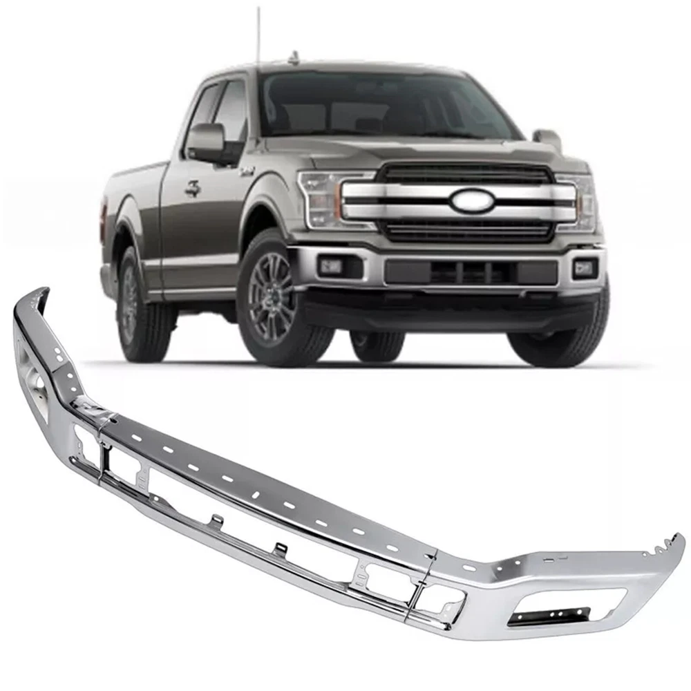 Specification: OE/OEM Part Number:JL3Z17757A Interchange Part Number:FO1002430 Color:Chrome Material :Steel Fitment 2018 - 2020 Ford F-150 Package : 1 set front bumper face bar & Installation Manual