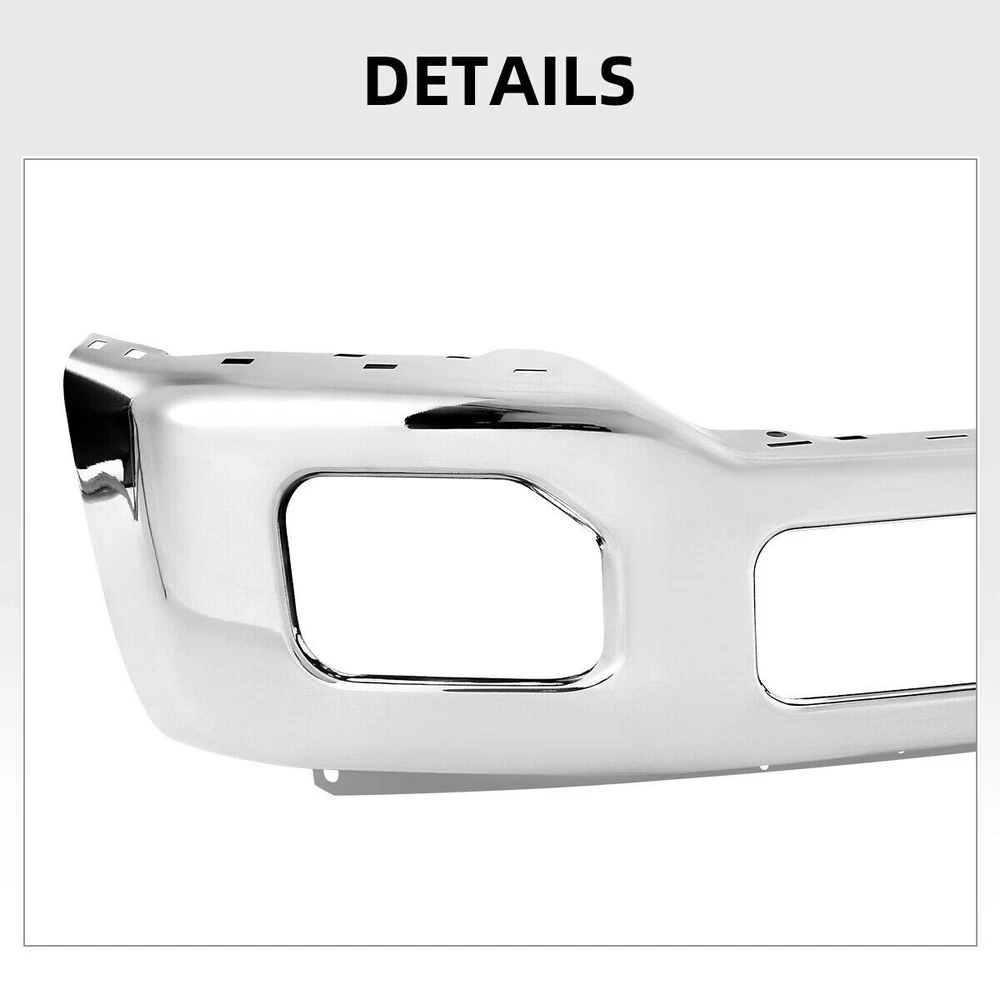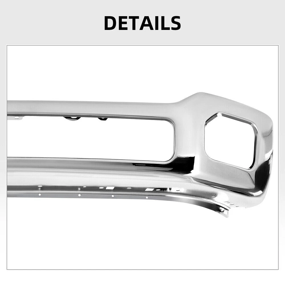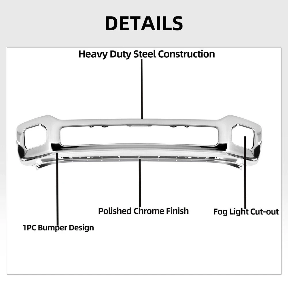 Specification Color: Chrome Fog light holes: With Fog Light Holes Sensor holes: w/o Sensor holes Finish: Chrome Steel Fitment 2011-2016 Ford F-350 Super Duty 2011-2016 Ford F-250 Super Duty Features & Benefits 1. Solid Construction Design - Made of heavy-duty steel and high grade PP to ensure an extremely long-lasting performance in outdoor conditions. 2. OEM Characteristic - Made to exact factory specifications and designed specifically for your vehicle for optimal convenience and functionality. 3. Quick and Easy to install - OE fitment and replacement for factory unit, fast installation without any drilling or modification. Instruction is not included. Professional installation is highly recommended. 4. SUV/Car/Truck front bumpers protect your car from rocks, tree roots and other obstacles. Save your a big fix fee in the body shop.