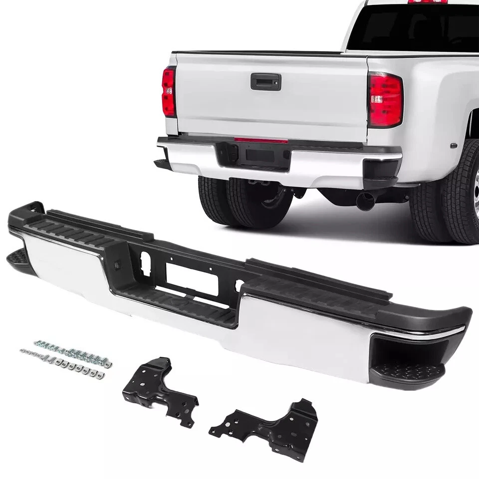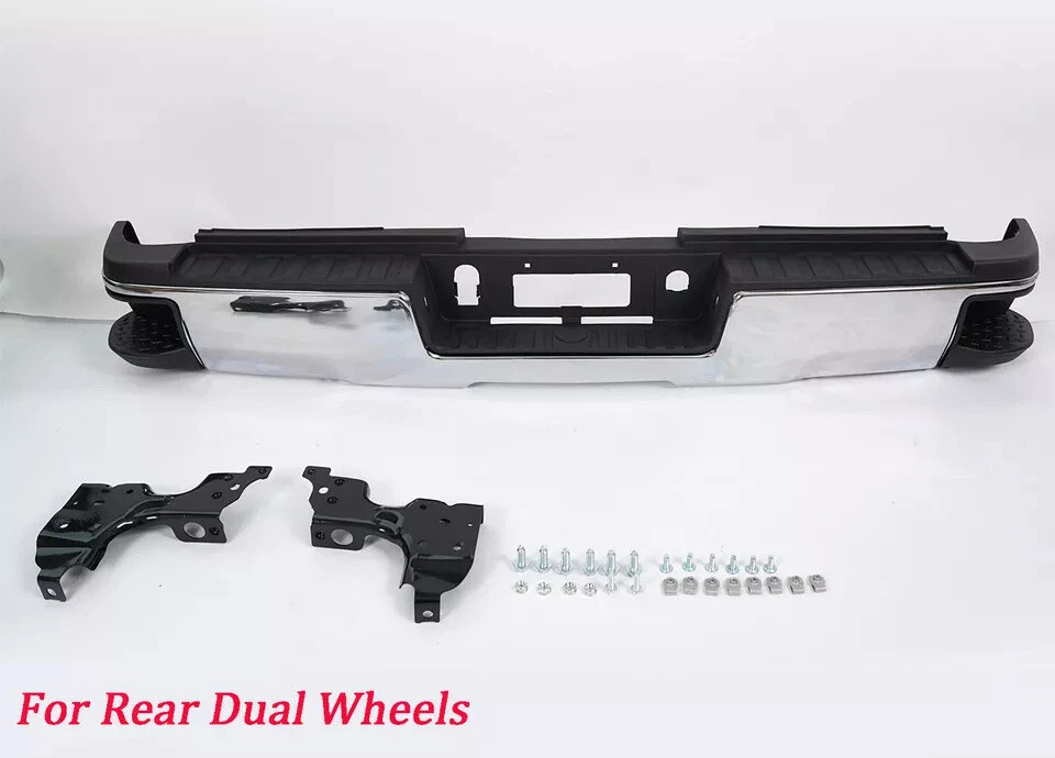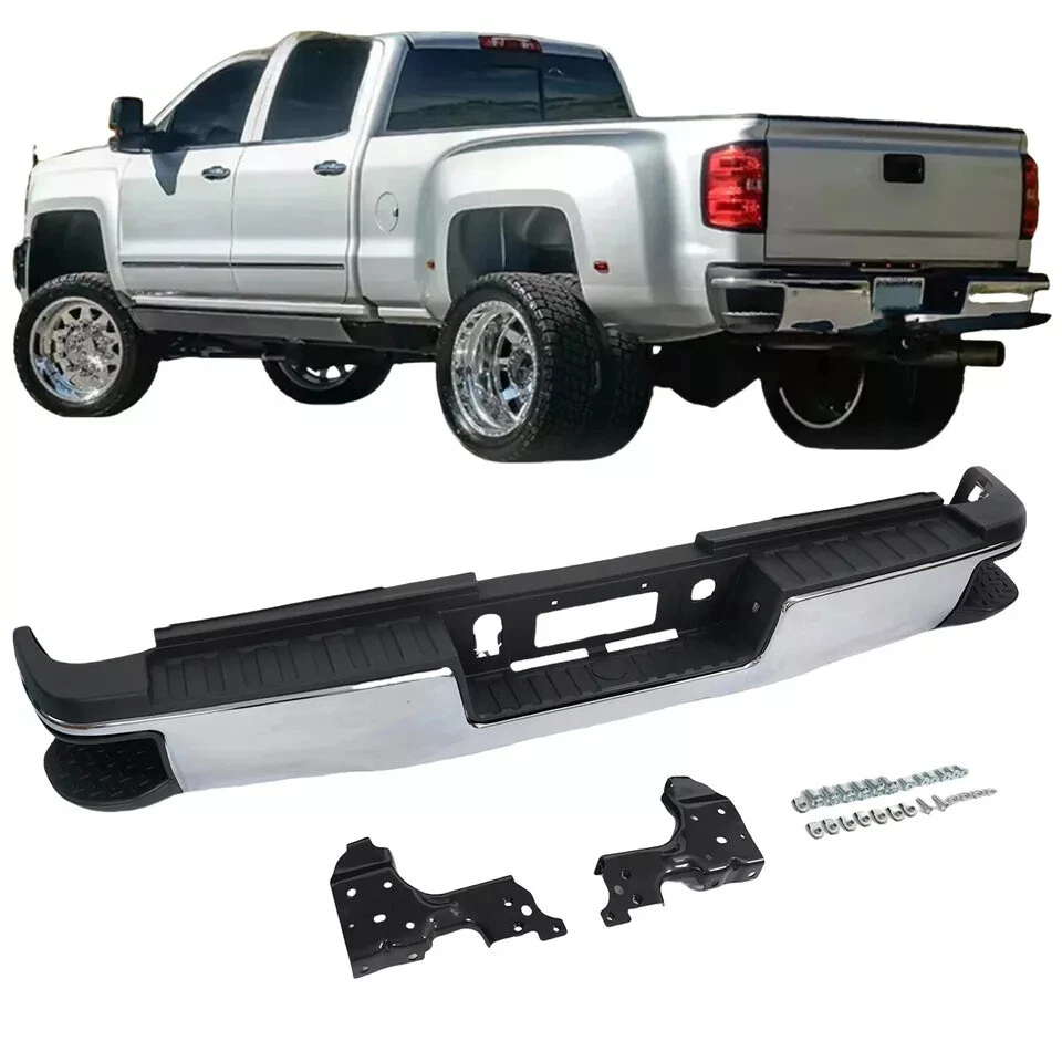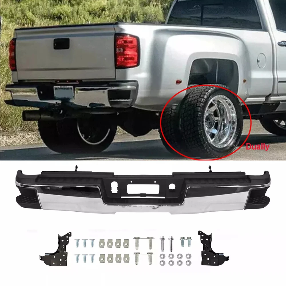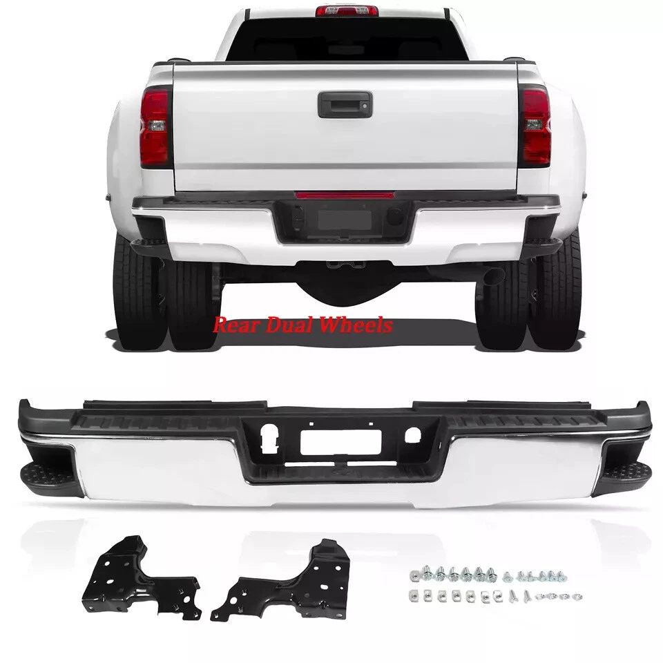 Fitment 2015-2019 Chevrolet Silverado 2500 HD 2015-2019 Chevrolet Silverado 3500 HD 2015-2019 GMC Sierra 2500 HD 2015-2019 GMC Sierra 3500 HD For Dual Rear Wheel (Dually) Models ONLY For Models Without Park Sensors For Use With Factory Tow Hitch (Hitch Plate Not Included) Details Surface Finish:Chrome Material:Steel Includes Reinforcement, Brackets, Hardware, Lamps and Step Pad Direct OE Replacement Package Includes: 1*Rear Bumper Assembly On Dec 12, 2024 at 17:05:25 PST, seller added the following information: On Dec 18, 2024 at 20:03:28 PST, seller added the following information: On Dec 22, 2024 at 18:24:32 PST, seller added the following information: On Dec 22, 2024 at 22:28:55 PST, seller added the following information: