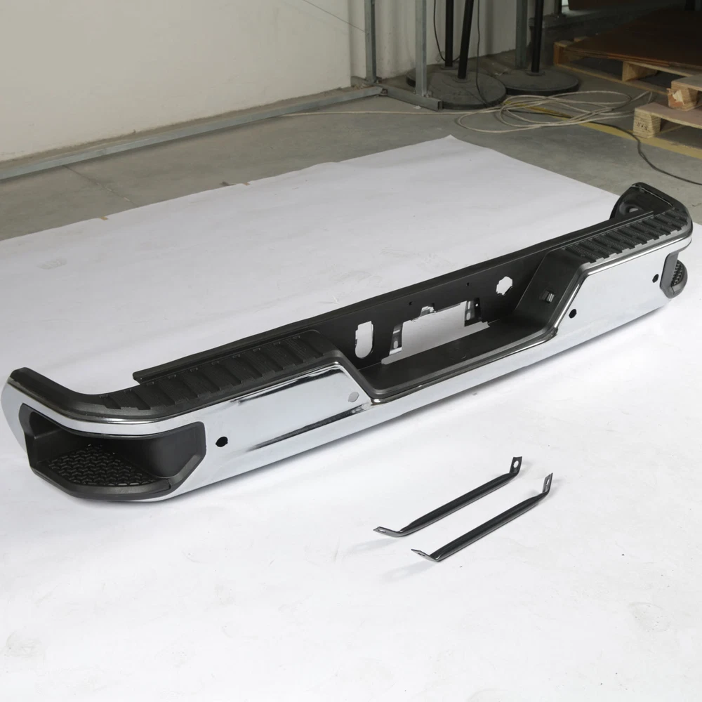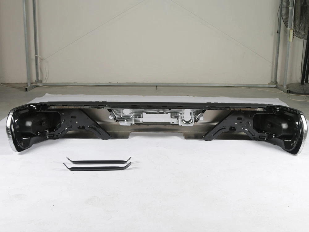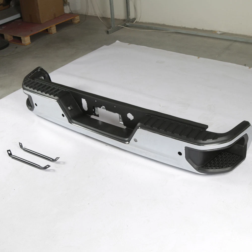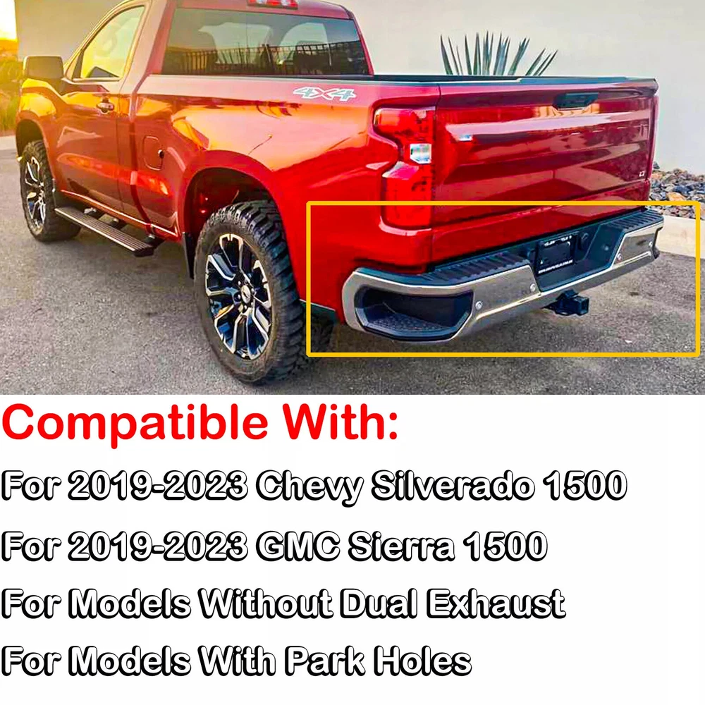 Partslink Number: CH1103137,CH1103145,CH1103147 Partslink Number: CH1103137,CH1103145,CH1103147 OE/OEM Number: 84749537, 85116253, 85128850, 85 Condition: 100% Brand NewColor: Chrome Material: Carbon Steel Type: Bumper Assembly Placement on Vehicle: Rear Fitment Type: Direct Replacement Fitment:For 2019-2023 Chevy Silverado 1500For 2019-2023 GMC Sierra 1500For Models Without Dual Exhaust,WithPark Assist Holes On Jul 9, 2024 at 17:23:40 PDT, seller added the following information: On Feb 9, 2025 at 13:49:59 PST, seller added the following information: