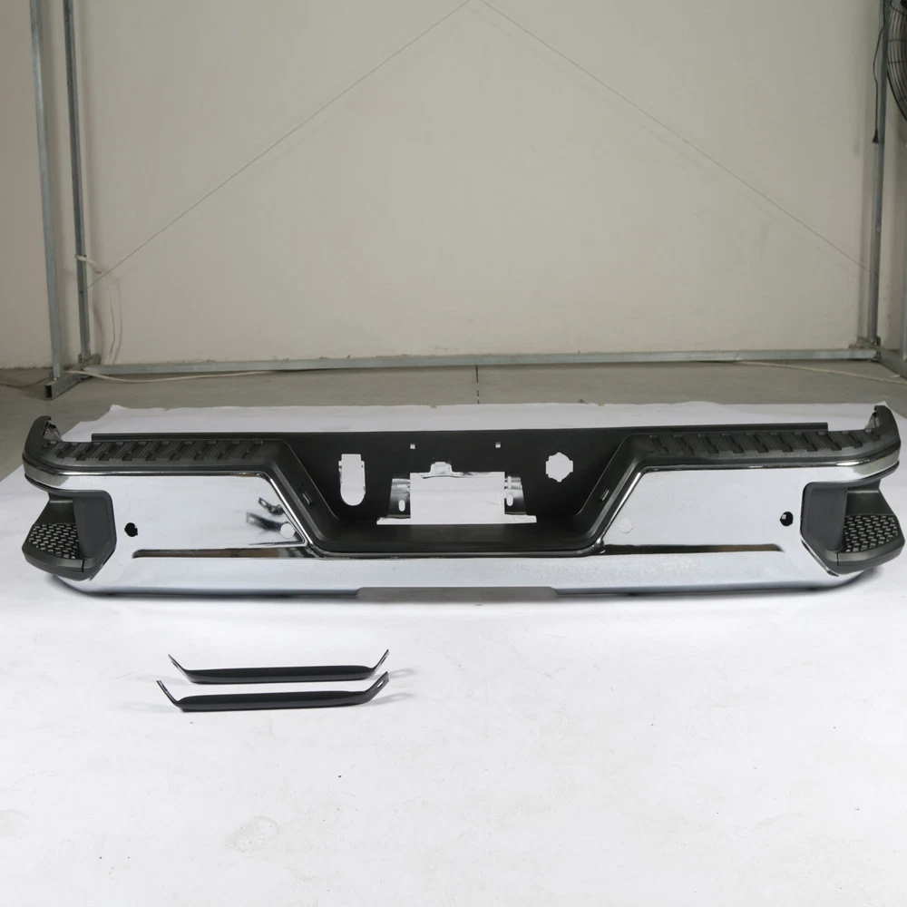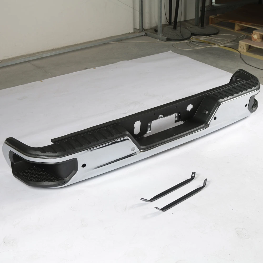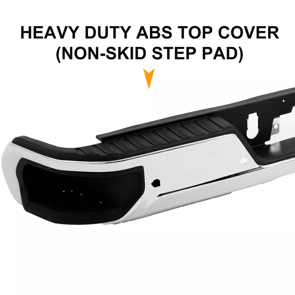 Partslink Number: CH1103137,CH1103145,CH1103147 Partslink Number: CH1103137,CH1103145,CH1103147 OE/OEM Number: 84749537, 85116253, 85128850, 85 Condition: 100% Brand NewColor: Chrome Material: Carbon Steel Type: Bumper Assembly Placement on Vehicle: Rear Fitment Type: Direct Replacement Fitment:For 2019-2023 Chevy Silverado 1500For 2019-2023 GMC Sierra 1500For Models Without Dual Exhaust,WithPark Assist Holes On Jul 9, 2024 at 17:23:40 PDT, seller added the following information: On Feb 9, 2025 at 13:49:59 PST, seller added the following information: