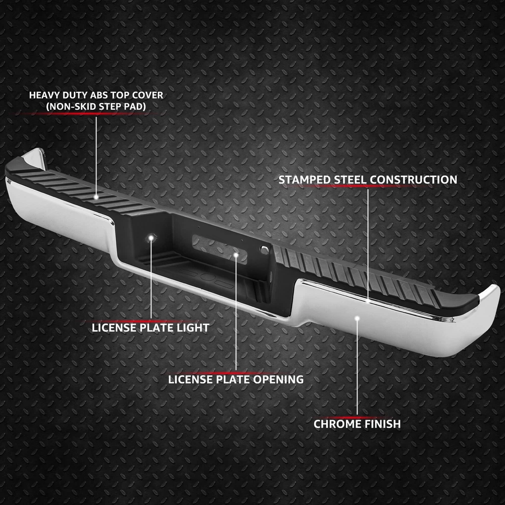 Compatible with: For 2005 F-150 King Ranch For 2004-2005 F-150 (submodel: Lariat, XL) For 2006 F-150 (submodel: Harley-Davidson Edition, King Ranch, Lariat, XL) , Production Date To August 8 2005 Bed Type:Fleetside/Styleside Material:Steel Notice:Not fit FLARSIDE (SUPER CREW) Model Partslink Number: FO1103118, FO1103126 Finish:Chrome Package Include: 1×Rear Bumper 2×Brackets 1×Bag of Installation Accessories On Dec 29, 2024 at 18:27:37 PST, seller added the following information: On Dec 29, 2024 at 20:13:17 PST, seller added the following information: