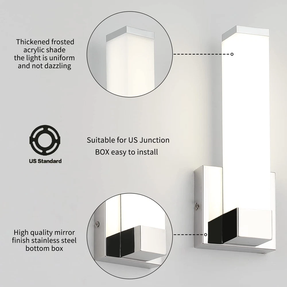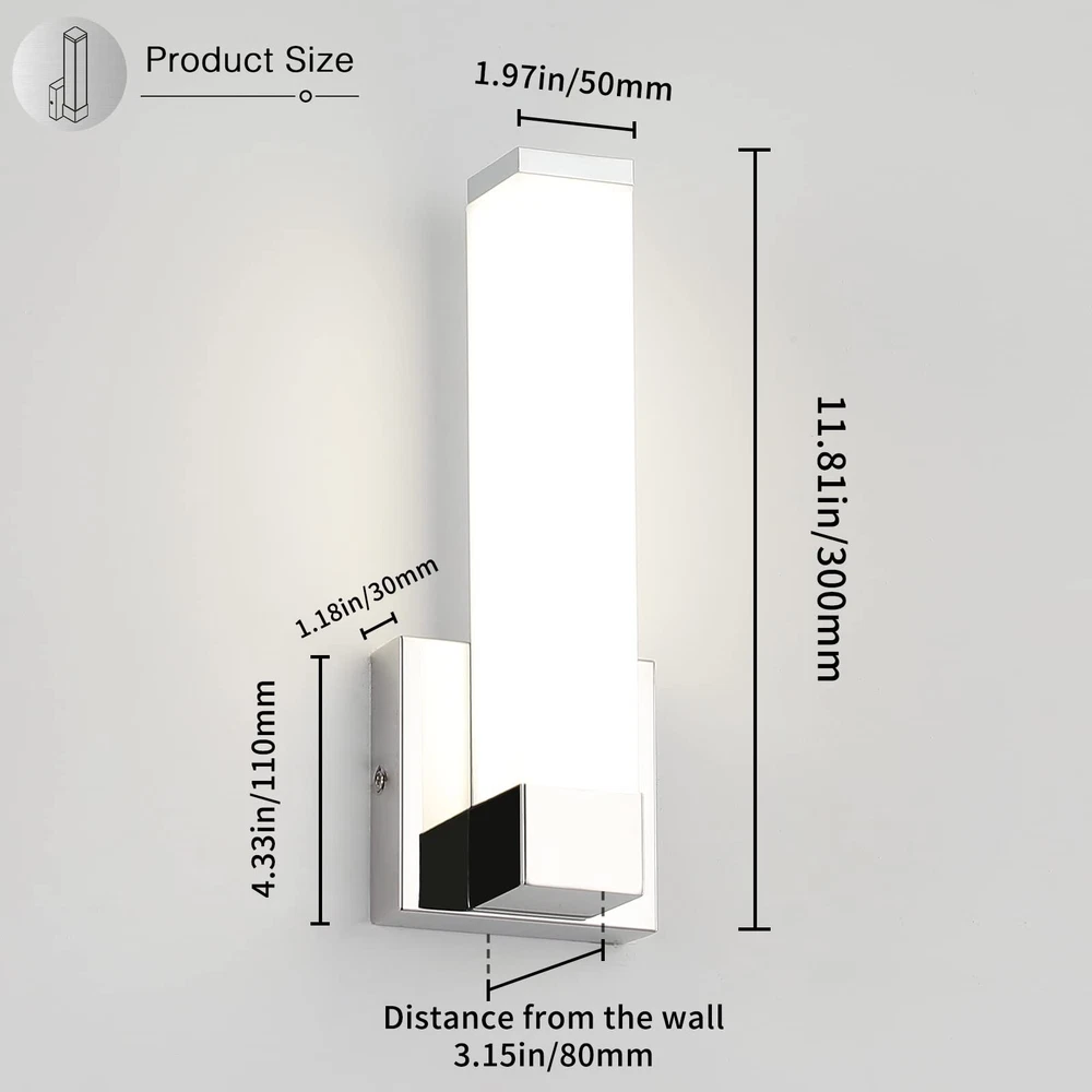 Chrome Wall Lights for Bedroom Modern Indoor LED Hallway Sconces Corner Light 12" Inch Height 12W 4000K Bedside Stair Sconces Wall Lighting Lamps 110V AC Product Details Color: Chrome-Not Dimmable Brand: 7Degobii MPN: 1710-CH-12W-4000K UPC: 788362403614 EAN: 0788362403614 Brand: 7Degobii Color: Chrome-Not Dimmable Material: Aluminum, Metal, Acrylic Style: Modern Light fixture form: Sconce Brand: 7Degobii Color: Chrome-Not Dimmable Material: Aluminum, Metal, Acrylic Style: Modern Light fixture form: Sconce Room Type: Bedroom, Hallway Product Dimensions: 11.81"L x 4.33"W x 3.15"H Specific Uses For Product: Balcony Indoor/Outdoor Usage: Indoor Power Source: Corded Electric Installation Type: Wall Mount Special Feature: Dimmable Control Method: Remote Light Source Type: LED Shade Material: Aluminum Number of Light Sources: 1 Voltage: 110 Volts Light Color: Neutral white(4000K) Included Components: LED Lens Lighting Method: LED Item Weight: 1.61 Pounds Number of Items: 1 Wattage: 12 watts Controller Type: Push Button Switch Type: Push Button Unit Count: 1.0 Count Water Resistance Level: Waterproof Brightness: 950 Lumen Efficiency: Energy-efficient Mounting Type: Wall Mount Shade Color: White Fixture Type: Non Removable Assembly Required: No Manufacturer: Bolang UPC: 788362403614 Model Name: 1710-CH-12W-4000K Part Number: 1710-CH-12W-4000K Item Weight: 1.61 pounds Country of Origin: China Item model number: 1710-CH-12W-4000K Size: 12W-4000K Special Features: Dimmable Batteries Included?: No Batteries Required?: No Warranty Description: 2 year manufacturer. Date First Available: February 20, 2023 Modern Design Wall Light: The LED Chrome wall sconce have comfortable color temperature - About 4000K(Natural white), 12Watts, best for bedroom, staircase, balcony, hallway,hotels, etc. Use Quality Materials: The wall lights is made of acrylic and stainless steel housing, modern brief appearance looks more Atmosphere,Chrome wall sconces illuminate the beauty of the room. LED Wall Light: The chrome Wall Sconce with feature of 12W integrated led light source Eqval. to 60W traditional bulb, creates stable and efficient wall light. Easy To Install: Bedroom wall lights bedroom is hardwired and surface mounting, using screws to fix, easy to install by yourself, no need to employ a license electrician. Wall Sconces Size: 11.81" height, distance from the wall:3.15 inch.Built-in LED light source, 12 watts 4000K color temperature. CRI 85.