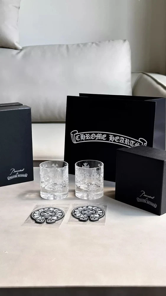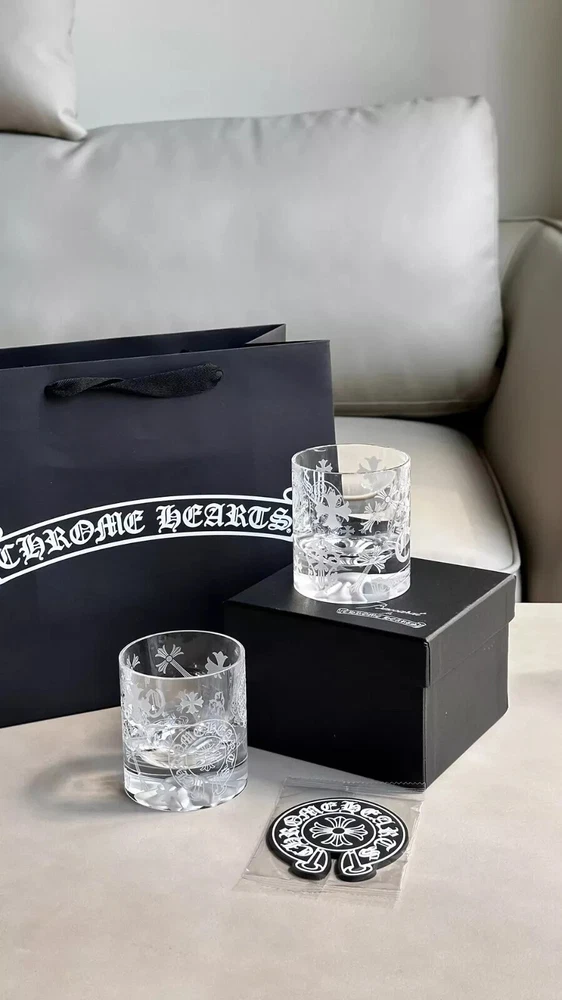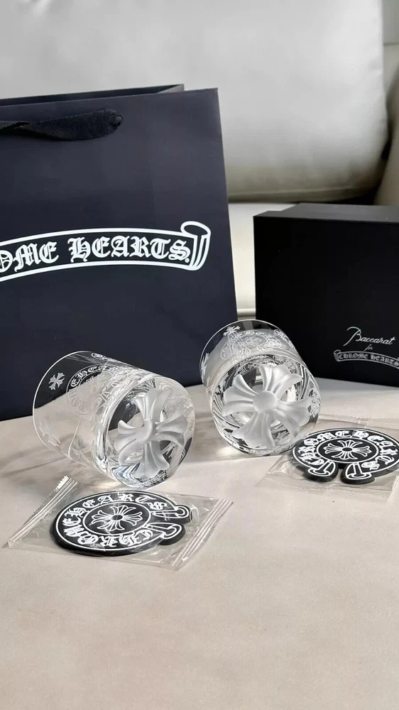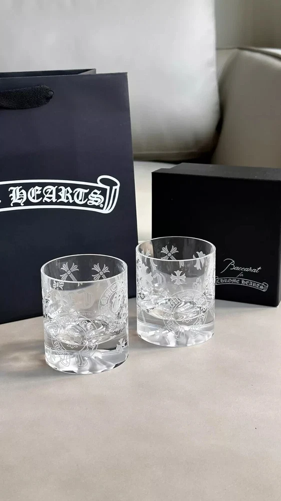 Chrome hearts crystal whiskey glass No box Set of two (2) pieces/unused Crystal X Chrome Heart whiskey glasses,