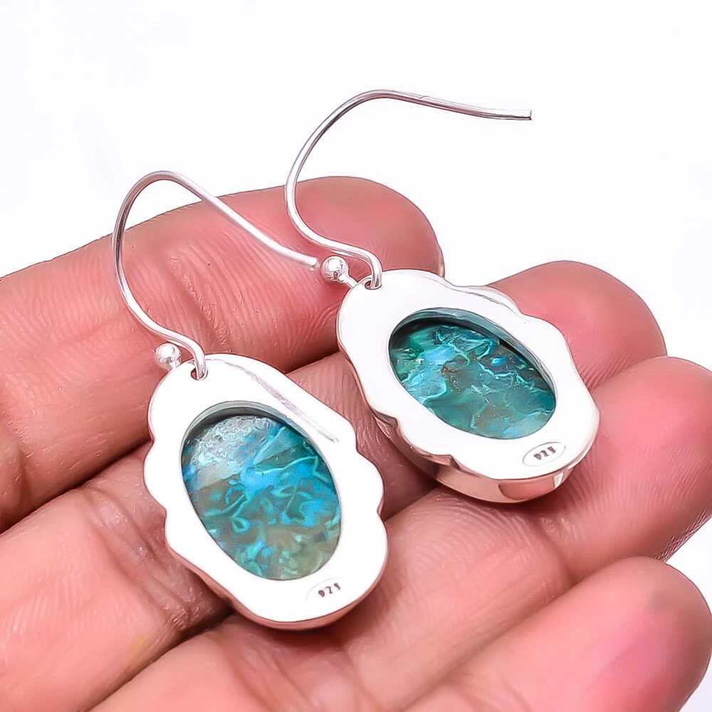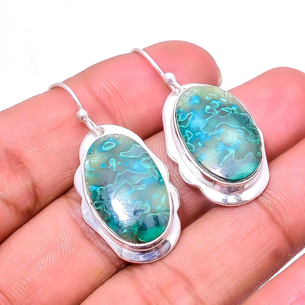 Theme Beauty Main Stone Depth As Seen in Picture Main Stone Length As Seen in Picture Main Stone Width As Seen in Picture Seller Warranty Yes Shape As Seen in Picture SKU E_9265_186_45 Main Stone Cut Type Cabochon Main Stone Size Free Size Antique Yes Handmade Yes Type Earring Style Drop/Dangle Metal Sterling Silver Metal Purity 925 Parts Per 1000 Base Metal Sterling Silver Total Carat Weight 49 Main Stone Chrysocolla Malachite Main Stone Creation Natural Main Stone Treatment Natural Material Gemstone, Stone Number of Gemstones 2 Item Length 1.56 Features Engraved, Nickel-Free, Handcrafted Ear Area Lobe Brand Unbranded Country/Region of Manufacture India Country of Origin United States Color As Seen in Picture Diamond Clarity Grade Not Applicable Number of Diamonds As Seen in Picture Item Diameter As Seen in Picture Gemstone Clarity Grade Opaque Diamond Color Grade Not Applicable Customized No Colored Diamond Intensity Not Applicable Certification 100% Genuine Guaranteed Setting Style Bezel Occasion Christmas, Birthday, Anniversary, Engagement, Wedding, Valen Shipping & Handling - Charge - 1st item-5.90 And Additional item-1.90 Handling Time - 1 Days . Delivery Time - 2 TO 3 DAYS. Shipping Service - USPS First Class Package 2 -3 Days. Returns - 1.We offer a 100% Money Back Guarantee minus shipping for 30 days after receiving the Item / item's. 2..The item must not be altered or damaged in any way shape or form. 3.Upon receiving these items your payment will be refunded. 4.Email us for return instructions before sending merchandise back. 5.Please allow up to 1 business day for all returns to receive credit. 6.Sizing does not affect the return policy. Payment - We accept PayPal for Payment ,should made with in 14 days once buying or winning done , in case of late information expected .
