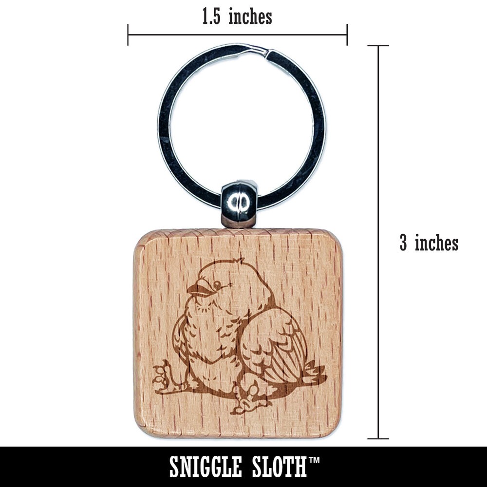 Chubby Bird Engraved Wooden Keychain Charm Square Tag