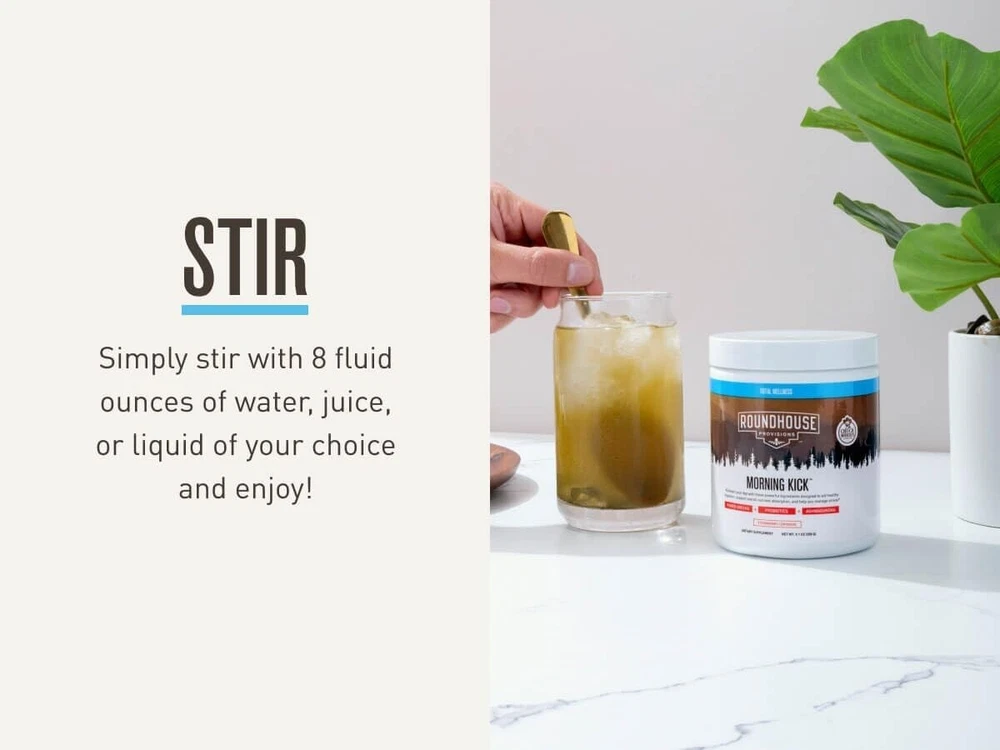 Chuck Norris Morning Kick, Greens Superfood Powder (Strawberry Lemonade) About this item: KICKSTART YOUR DAY: Start your day with Morning Kick, a delicious superfood greens powder drink that tastes like strawberry Lemonade. Enjoy benefits like improved digestion health, reduced bloating, balanced gut bacteria, improved bowel movements, stress support, GI strength, energy and joint care. POWERFUL INGREDIENTS: This powerful greens and superfood powder was formulated with probiotics to help support gut health. Ashwagandha to support brain function and help manage stress, and collagen to help protect joints. QUICK AND EASY TO PREPARE: Morning Kick is as easy as taking your daily supplements. Just mix 1 scoop with 8 fluid ounces of water… and enjoy! DELICIOUS ANY TIME: The delightful strawberry lemonade flavor provides a tasty pick-me-up any time day or night — emergency or no emergency. LONG LASTING: Please note, this product features a MFG Date, this is the date the product is manufactured, NOT an expiration date. We guarantee the product for 2 years from MFG Date.