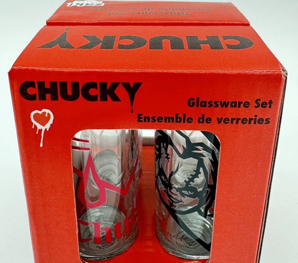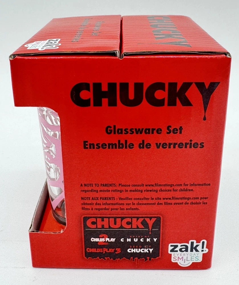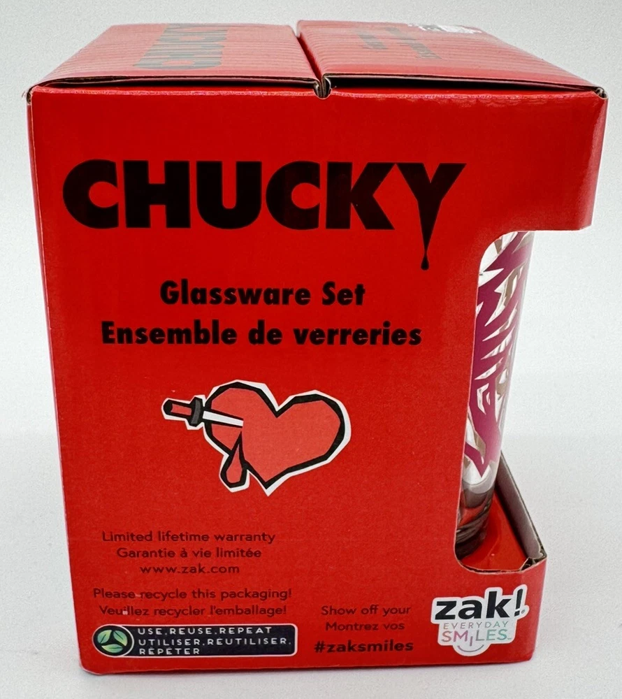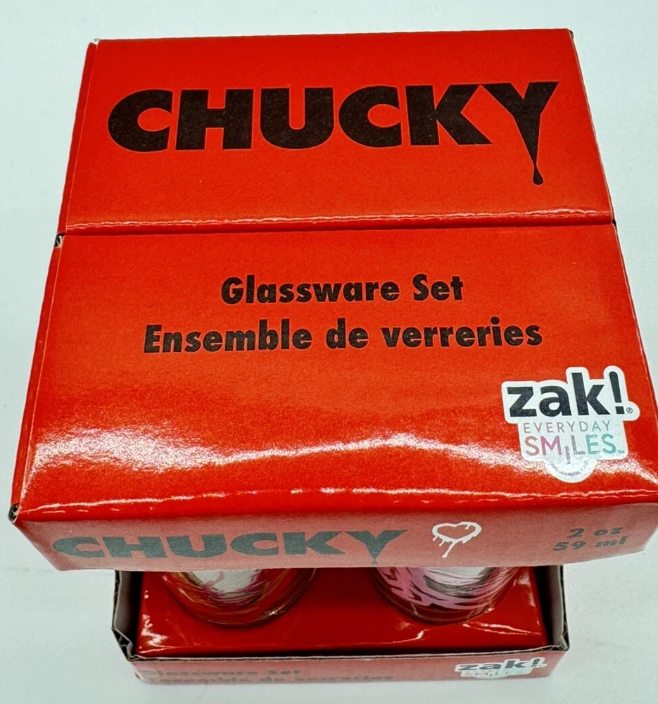 Service For:4Occasion:Anniversary, Birthday, Adult, Valentine's DayPersonalize:NoGlassware Type:Glassware SetDepartment:AdultsNumber of Items in Set:Four-PieceBrand:ZakPattern:NoveltyCharacter:Chucky, TiffanyStyle:ClassicFeatures:Decorated, Graphic PrintCare Instructions:Machine WashableMaterial:GlassType:Shot GlassTheme:Halloween, Valentines Day, Horror, Movies And FilmCharacter Family:Bride Of ChuckyColor:ClearShape:RoundSet Includes:Shot GlassDesign:Round