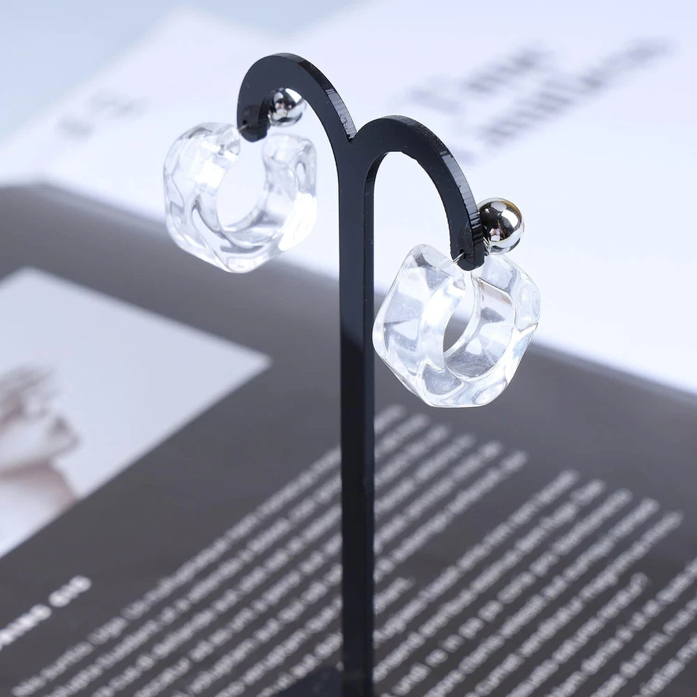 Chunky Resin Hoop Earrings Clear Acrylic C-Shape Stud Earrings Double Sided Front Back Earrings Thick Acrylic Resin Geometric Earrings Statement Hoop Earrings Jewelry for Women Product Details Color: Clear Brand: Zeshimb MPN: Seh-039-2 UPC: Does not apply EAN: Does not apply Package Dimensions : 3.9 x 1.9 x 0.19 inches; 0.32 ounces Department : womens Date First Available : July 18, 2023 Manufacturer : Zeshimb Brand, Seller, or Collection Name: Zeshimb Metal: No Metal Type Material: Resin Gem Type: No Gemstone Setting: Post Back finding: Push Back Model number: Seh-039-2 About our shopYour beauty is our pursuit.We provide diverse,popular and unique products for you to choose from.Let them add glory to your season.Earrings accessories are spirited and eye-catching,showing off your elegant charm and making your life more exquisite.Resin Earrings SpecificationSize and Weight:As showMaterial: Alloy and acrylic Color:BlueStyle:Bohemian resin hoop earrings to add sparkle and shine to your look.Warm Tips for you:1.Please avoid wearing the same piece of jewelry for a long time and often changed,jewelry plating is easily eroded by long-term exposure to sweat. 2.Please avoid contact with chemicals,jewelry is easily damaged,all accessories should be removed before bathing or swimming3.Please avoid overlap jewelry,all accessories should be stored in a jewelry box with a separate small grid. 4.Please wipe them with soft rag when you clean your jewelries.5.Manual measurement and photo,please allow a slight difference between the photo and the actual body.Notice:If you have any problem,please feel free to contact us by Mail,we will reply and provide related services within 24 hours. Just be happy to add this beautiful earrings to your collection.