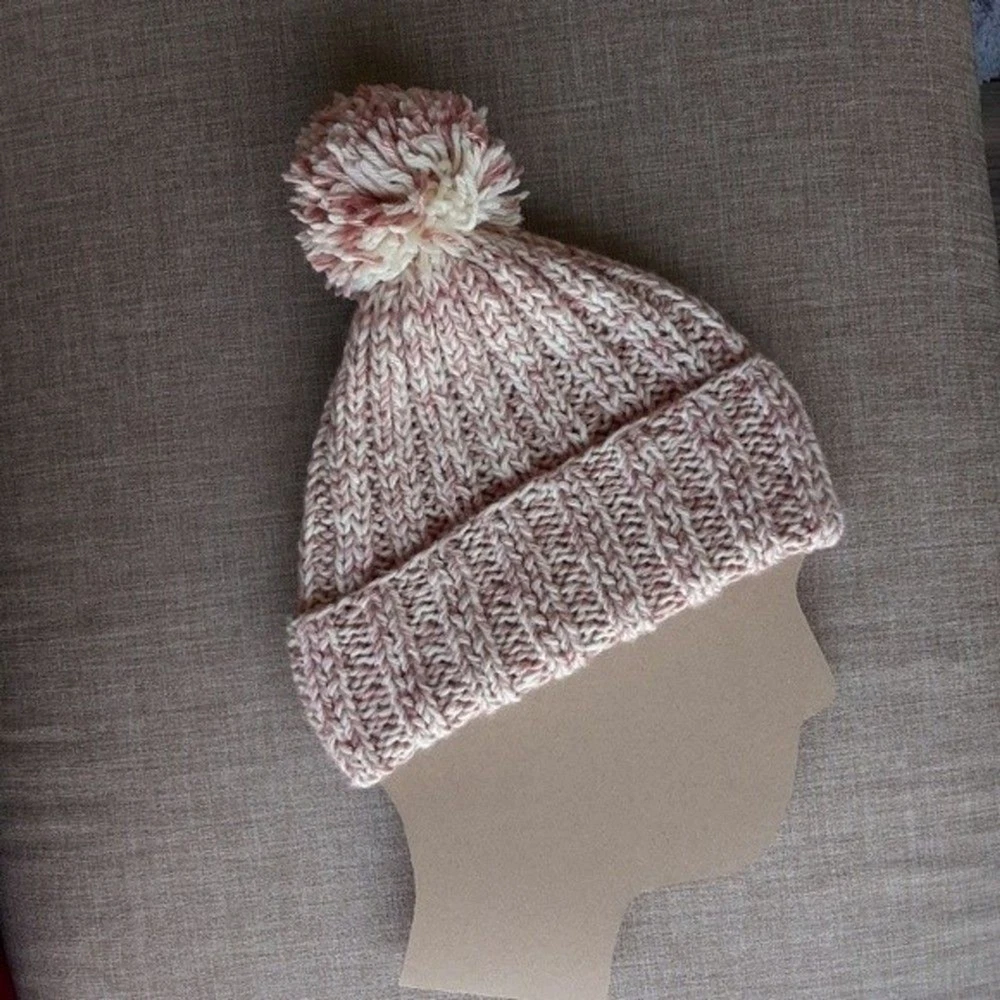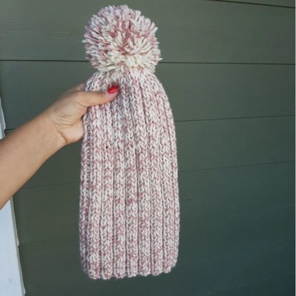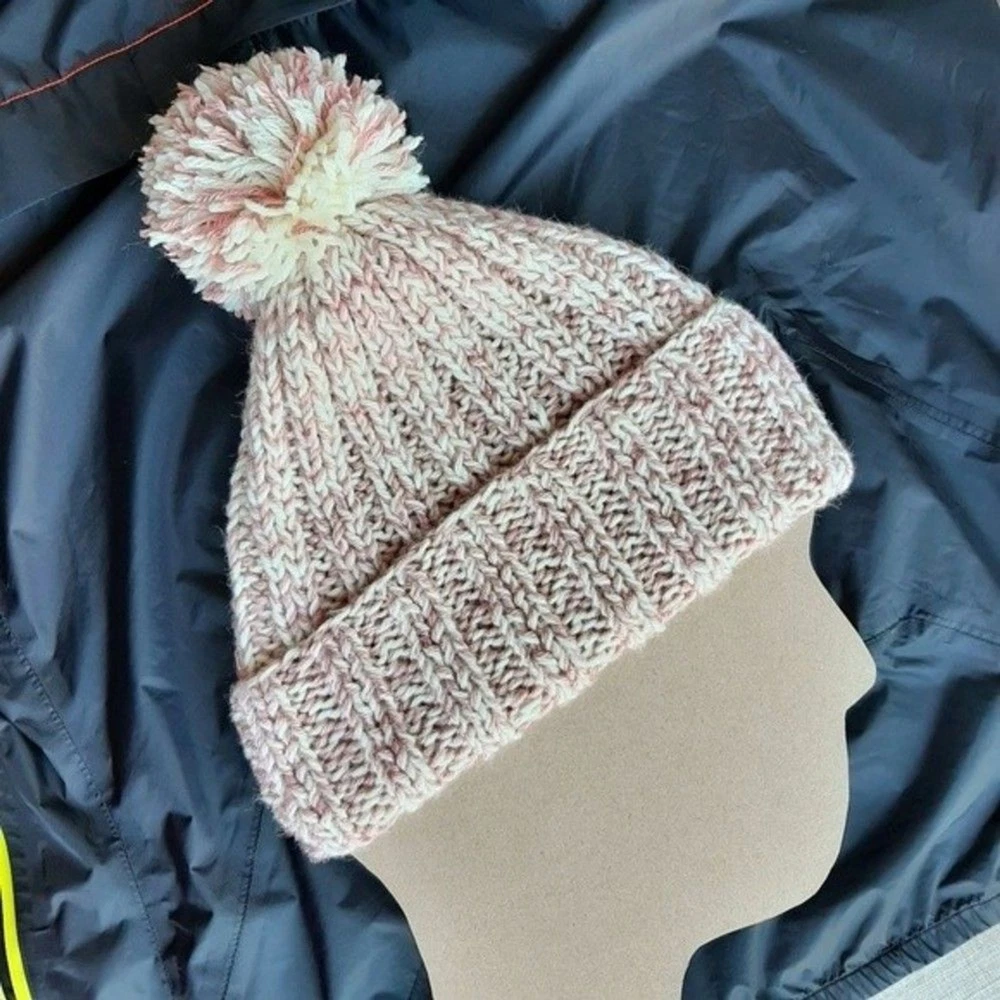 Chunky Soft Pink and White Beanie Warm Hat 2 needles Knit Cap ♡ Hand Knitted ♡ with pompom ♡ New, Never worn ♡ Detailed measurements in pictures ♡ Handmade with love by myself Shipping Same or Next Business Day! Thanks for watching! handmade handcrafted hand Knitted yarn wool blend cable knit Stretchy soft warmer pink twisted #handmade #handcrafted #handKnitted yarn #ribed woolblend cable knit Stretchy soft warmer pink twisted #Headband Knit yarn