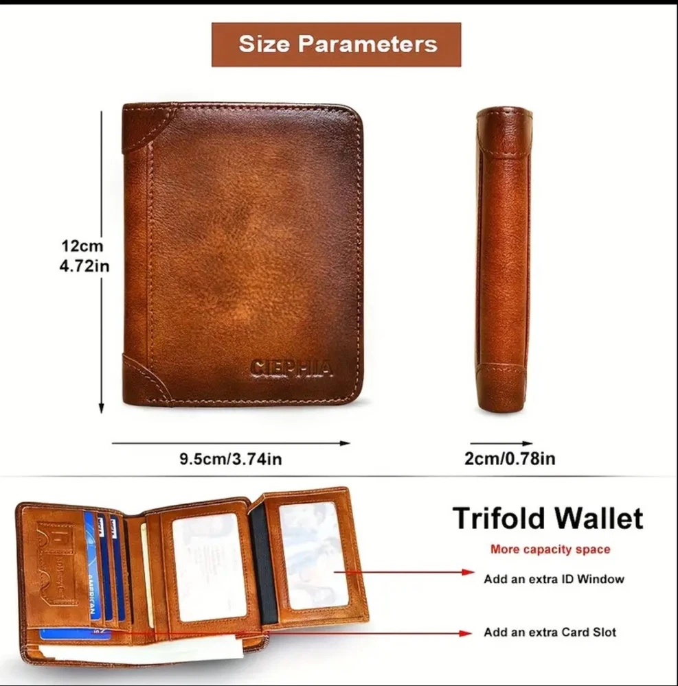 Ciephia Mens Genuine Leather Trifold Wallet with RFID Blocking - Brown. Condition is New with tags. Shipped with USPS Ground Advantage.