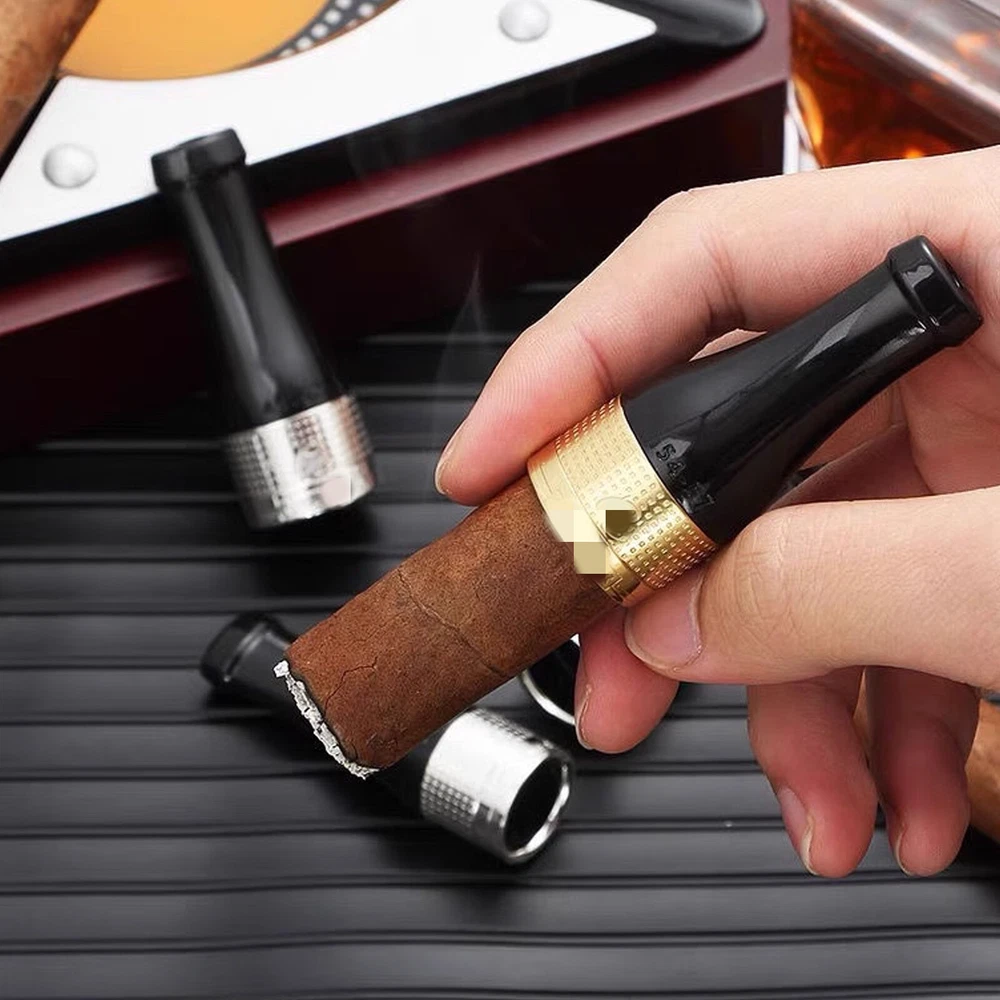 RESIN MATERIAL: The smooth, delicate surface of the mouthpiece using resin material. RING GAUGES: Cigar Holder Accommodate Different Ring Gauge: A: 42-44 B: 46-47 C: 49-52 D: 54-57, Take it with you and Enjoy it at Any Time. EASY TO CARRY: Easily slide the mouthpiece along the side of the cigar into the pocket. Small, lightweight, compact, suitable for travel. OCCASION: A good gift for all cigar lovers for Father's Day, Birthday, Anniversary, Wedding, Valentine's Day, Christmas, Thanksgiving. Product Name: Cigar rack Elegant and modern design What do you get: 4 X cigar rack 1 X gift box packaging