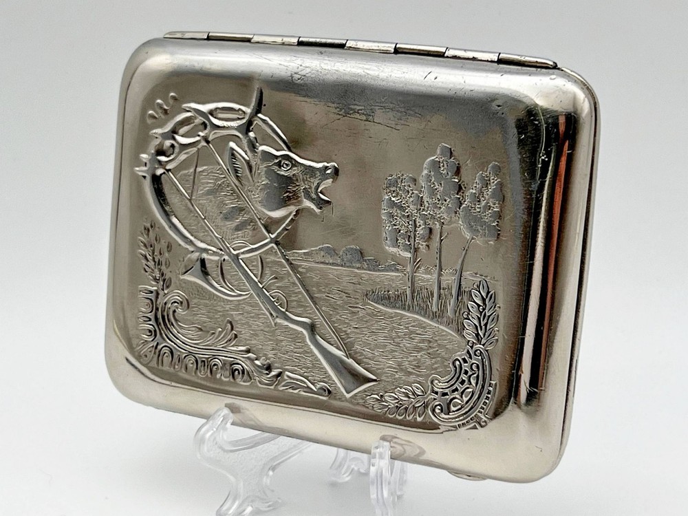 $ 20.6USSR Antique Silver Plated Brass Cigarette Case With Deer Image