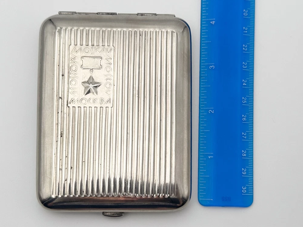 Collectible Cigarette case USSR "Hero City Moscow". Magnetic metal. This vintage cigarette case has been restored: the metal has been cleaned and polished, minor touch-ups have been applied where the original finish was lost, and, if needed, the elastic bands have been replaced. The original aesthetics have been preserved, making it a great addition to any collection. Could be a great gift for someone you love or can be added to your collection. Contact me if any questions. I do offer combine shipping discount if you buy 2 items or more. I make shipments the next business day after the purchase. Buyer protection is in effect. Please watch the photos carefully as they are important part of description. Thanks for your interest. Have a look at some other lots at our store. 💛💙