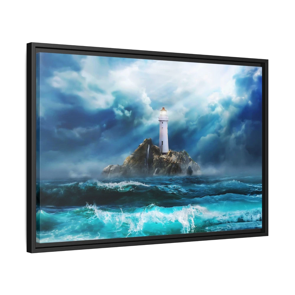 Cinematic Lighthouse Coastal Seascape Framed Canvas Print Wall Art Home Decor