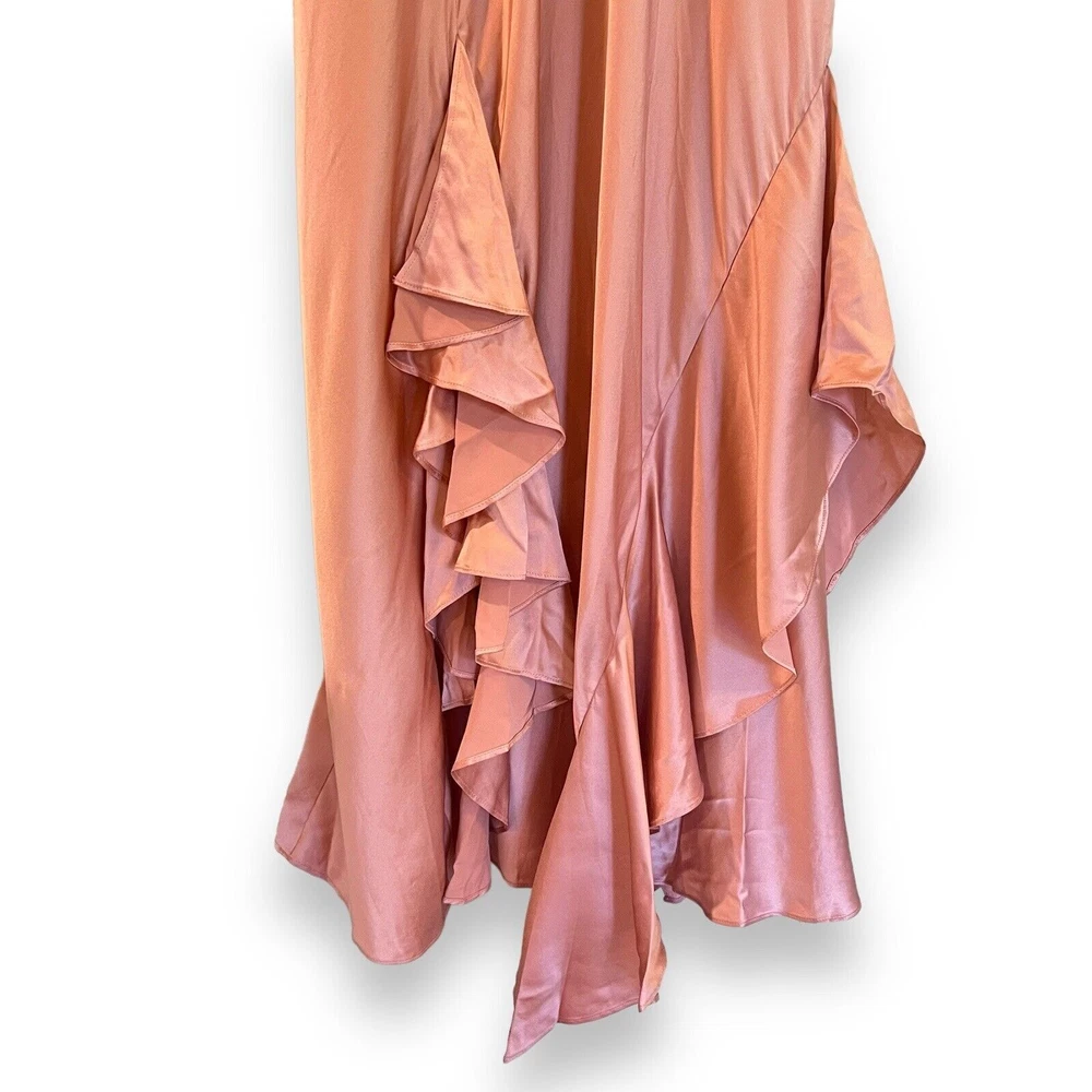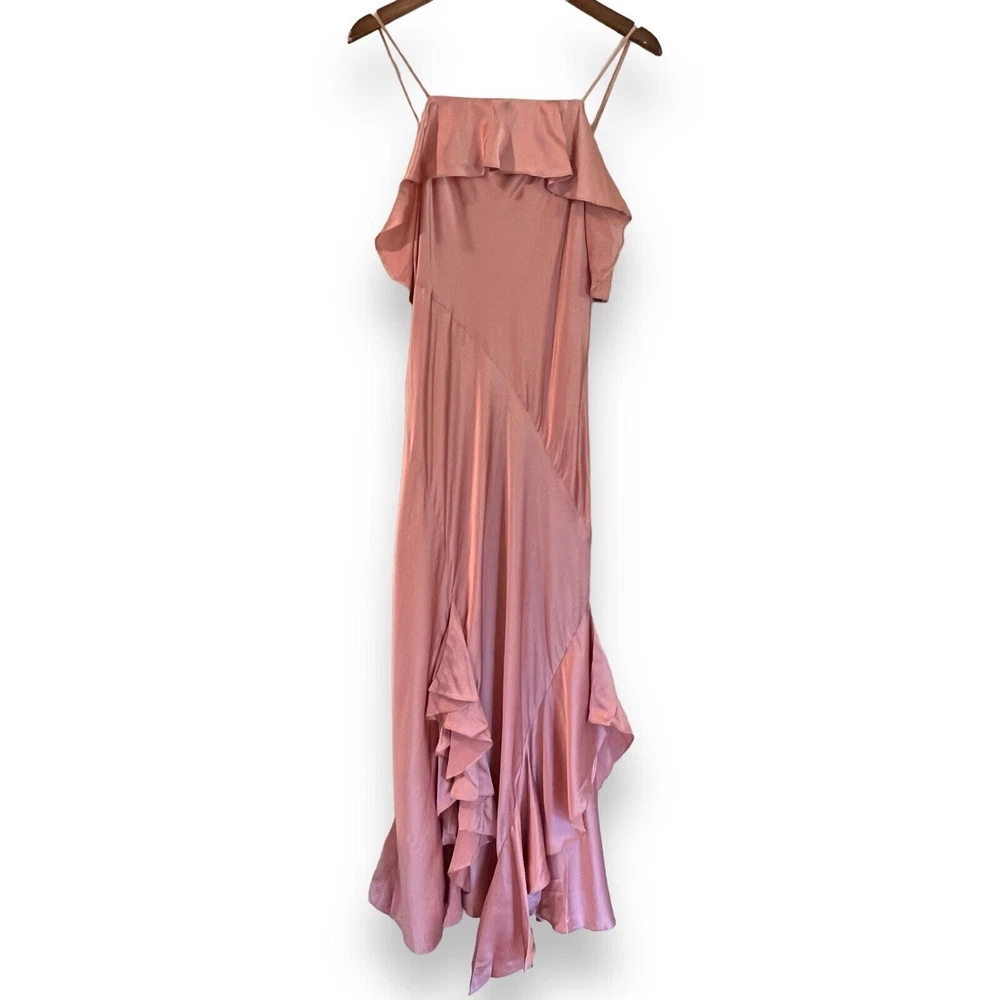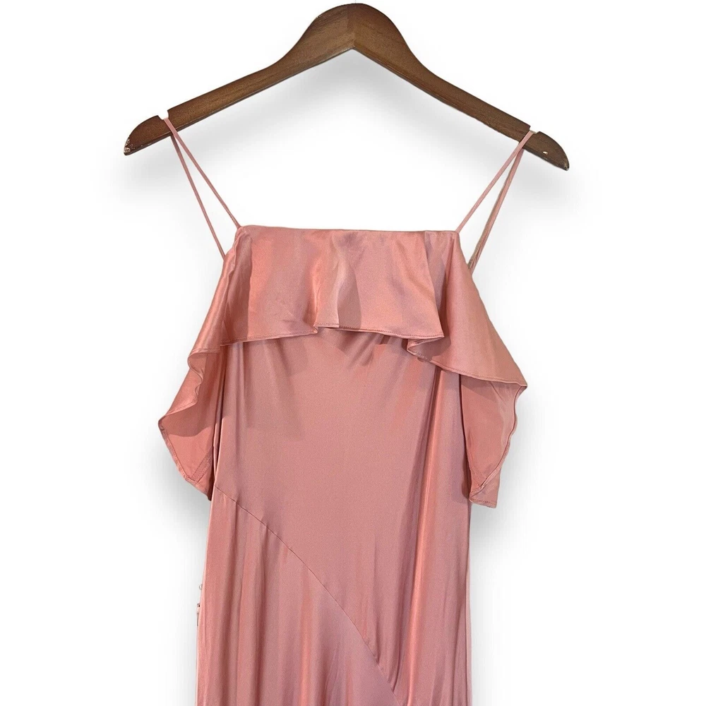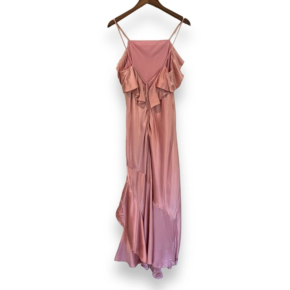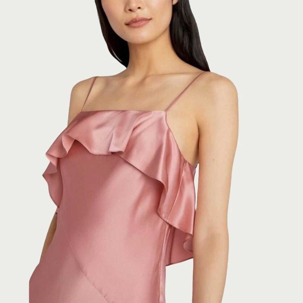 Cinq à Sept Blush Pink Elly Ruffle 100% Silk Maxi Slip Dress Size 12 $595