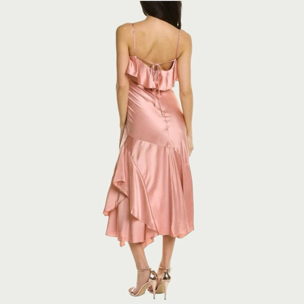 Sleeve Length: Sleeveless Neckline: Square Neck Department: Women gtin13: 194945187299 Material: Silk Brand: Cinq à Sept Size Type: Regular Accents: Ruffle Theme: Designer, Wedding Style: Maxi, Slip Dress Color: Pink Season: Summer, Spring, Fall Fabric Type: Satin Closure: Zip Garment Care: Dry Clean Only Pattern: Solid Sleeve Type: Strappy Sleeve Country/Region of Manufacture: China Size: 12 Features: Adjustable, Lined, Asymmetric Occasion: Party/Cocktail, Wedding, Formal UPC: 194945187299 Dress Length: Long