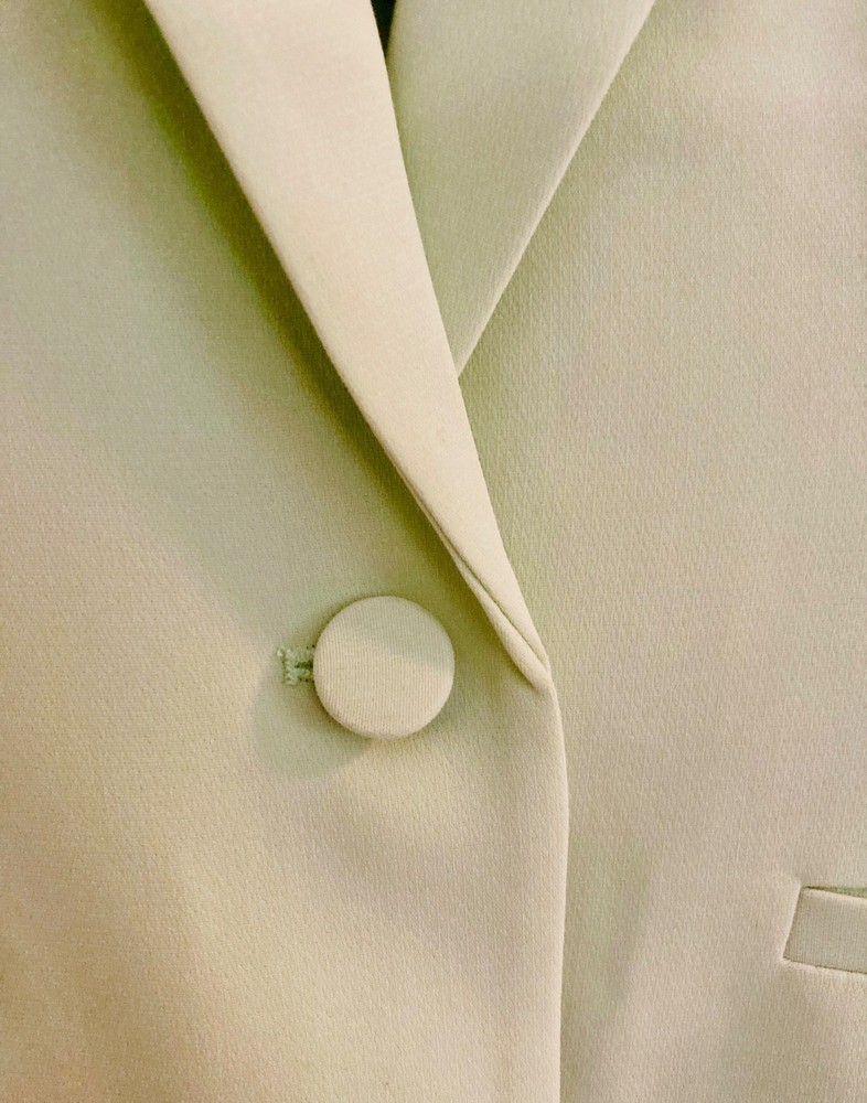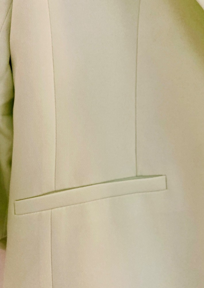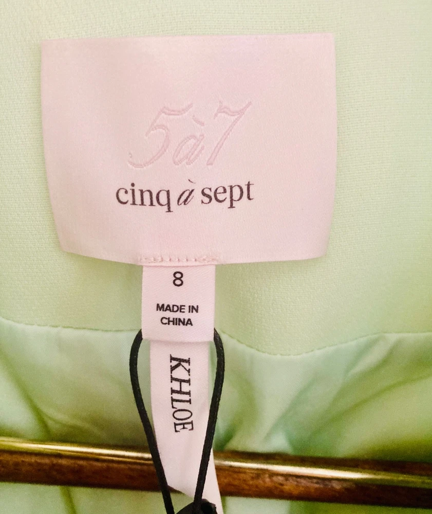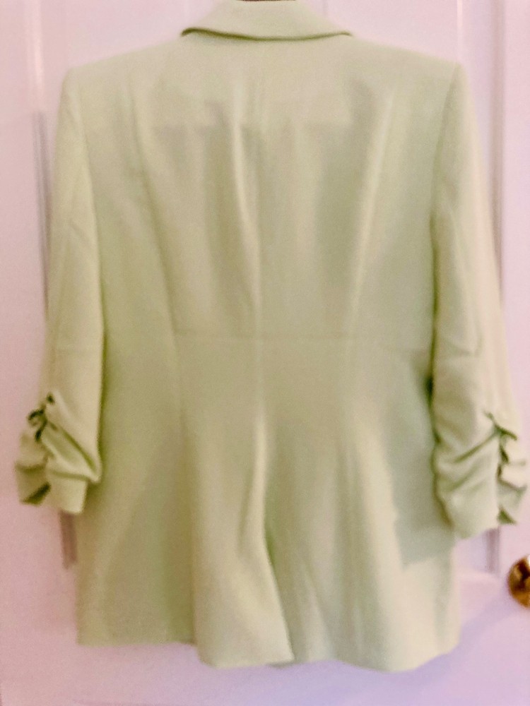 Women’s Cinq à Sept blazer in a fresh light lime shade, brand new with original tags, featuring ruched sleeves and fabric-covered buttons for a polished finish . A versatile size medium piece that works beautifully for the office, city outings, or dressed up for a cocktail look.