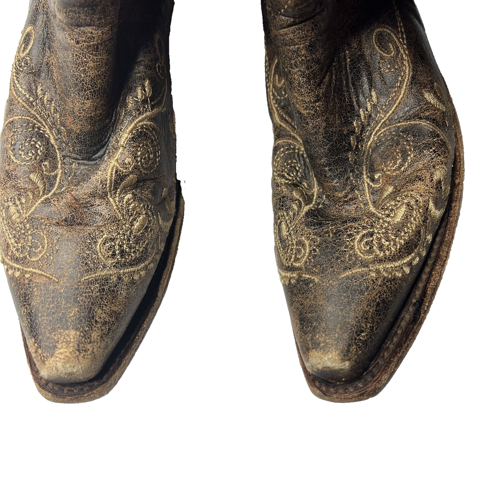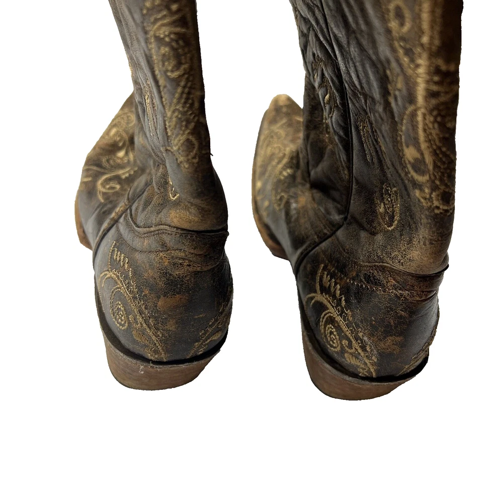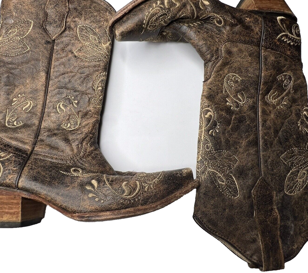 Circle G Women's Cowgirl Boots 6.5 M Brown Dragonfly Stitch Distressed Rodeo There are some markings on the boots. Please view photos for condition.