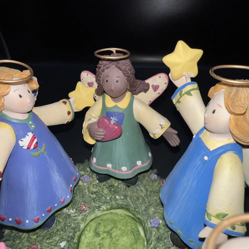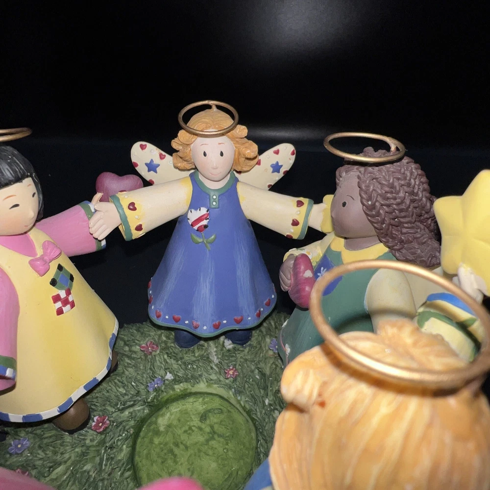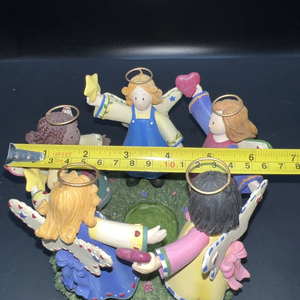 This Circle of Friends Angels Votive Candle Holder is the perfect addition to your home decor. Made of high-quality resin, it features a contemporary style with a multicolor design and an angel pattern. Measuring 6 ¼" x 6" and 5" tall, it is suitable for votive candles and can be used as a free-standing holder. Whether you're looking to add a touch of elegance to your home or gift it to a loved one, this Circle of Friends Angels Votive Candle Holder is a must-have. You will need to add a candle as it is not included