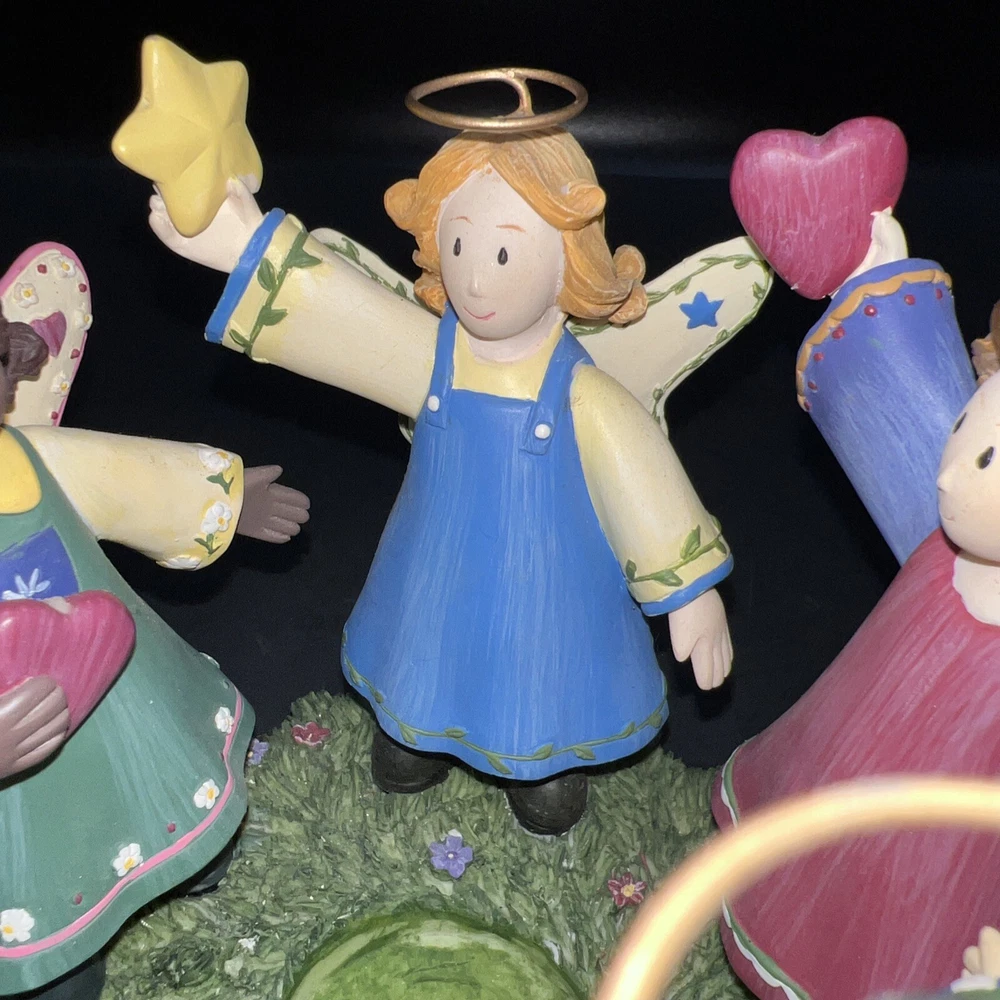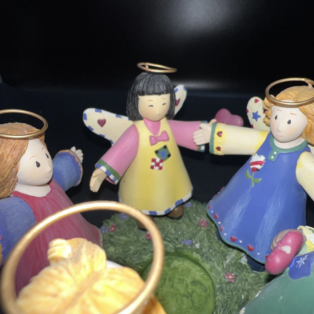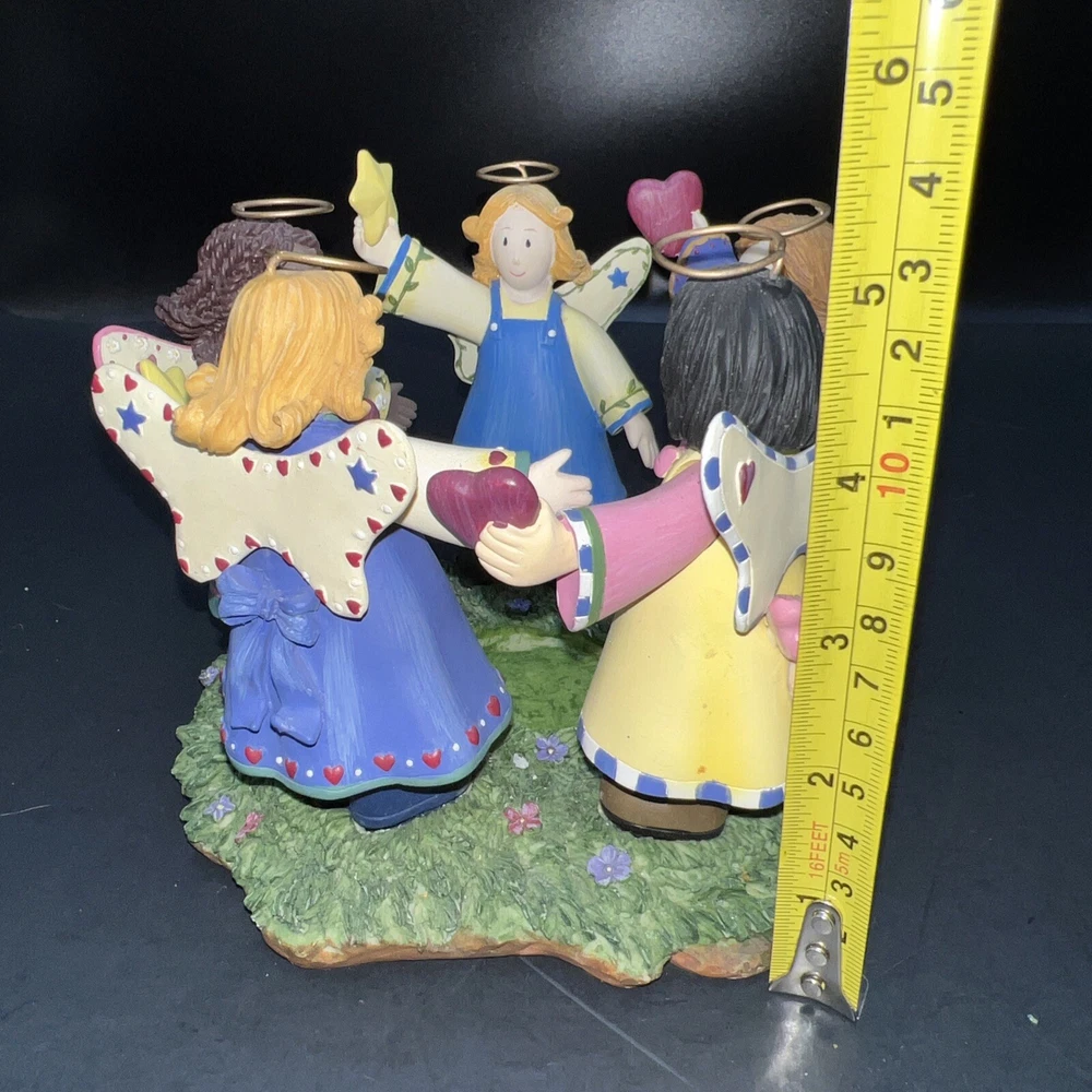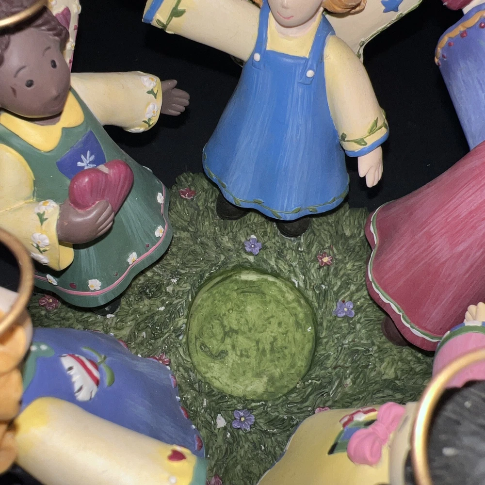 This Circle of Friends Angels Votive Candle Holder is the perfect addition to your home decor. Made of high-quality resin, it features a contemporary style with a multicolor design and an angel pattern. Measuring 6 ¼" x 6" and 5" tall, it is suitable for votive candles and can be used as a free-standing holder. Whether you're looking to add a touch of elegance to your home or gift it to a loved one, this Circle of Friends Angels Votive Candle Holder is a must-have. You will need to add a candle as it is not included