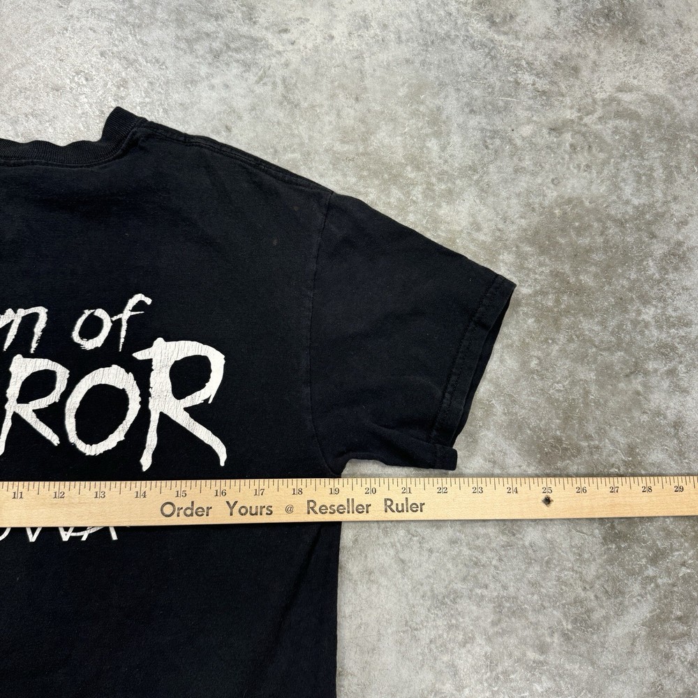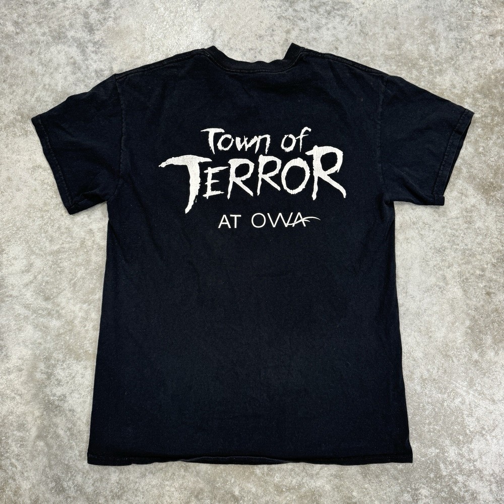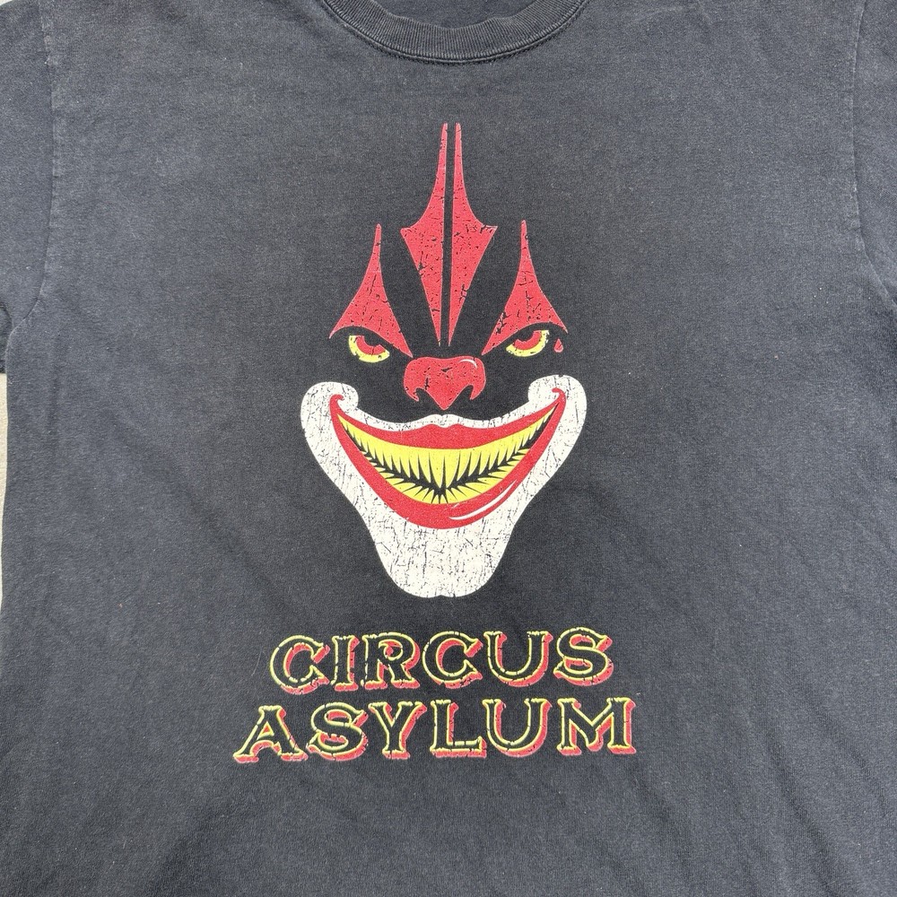 Circus Asylum Band T-shirt Black mens Medium Town of Terror Grunge Rock Metal Please check the measurements in the photos in order to gurantee correct fit of the clothing item! the measurements tend to be located at the end of the set of photos! thanks! Our customers are always our first priority here at MJTvintage! if you ever have any concerns please contact us we typically respond very promptly! if there is for any reason your not happy with a purchase don't leave a bad review just contact us and we will be happy to accomodate any issues you had, we believe in going the extra mile for our customers!! lastly, you are always the top priority as the customer and we thank you for your support! Contact us We can be contacted at any time through eBay messages if you have any questions, comments or product requests. We will respond to you within 24 hours and do our best to help you out! We encourage our customers to contact us with any questions or concerns! We'd like to be sure you are completely satisfied with your purchase. Returns For our Buyers Convienience we offer free returns! we do though stringly discourage returns for the item not fitting as we include detailed measurements in our listings so please try to be respectful of that, thanks! Shipping All packages are shipped next day 100% of the time except if purchased on the weekend they go out on monday morning! we pride ourselves on our fast shipping and hold true to it always! Disclaimer most of the items we sell are vintage (20 years & older), therefore some of them might have minor flaws that are caught in the pictures but we try our hardest to describe and picture any flaws! Free eBay listing template designed by © dewiso.com .