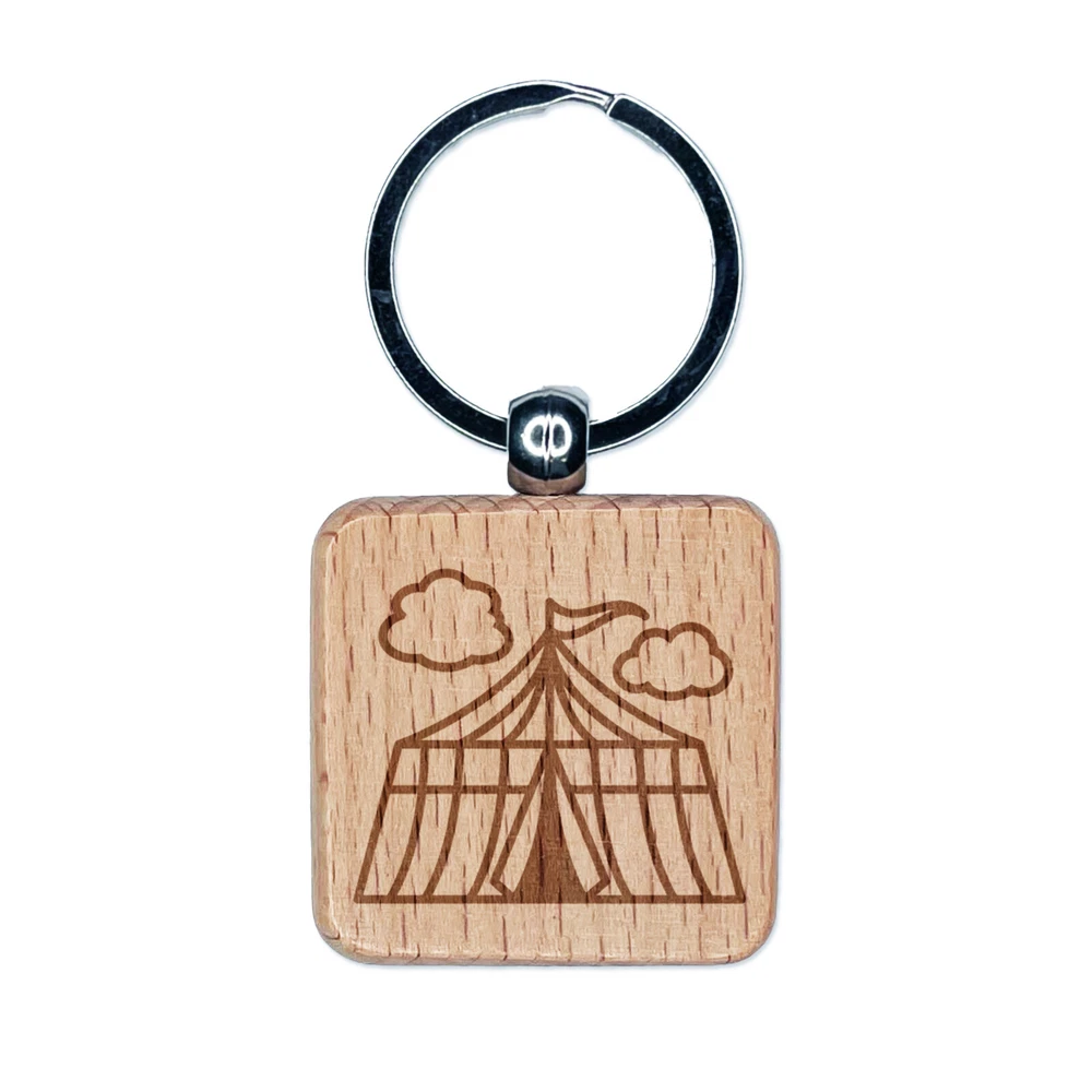 Circus Carnival Tent Engraved Wood Square Keychain Tag Charm