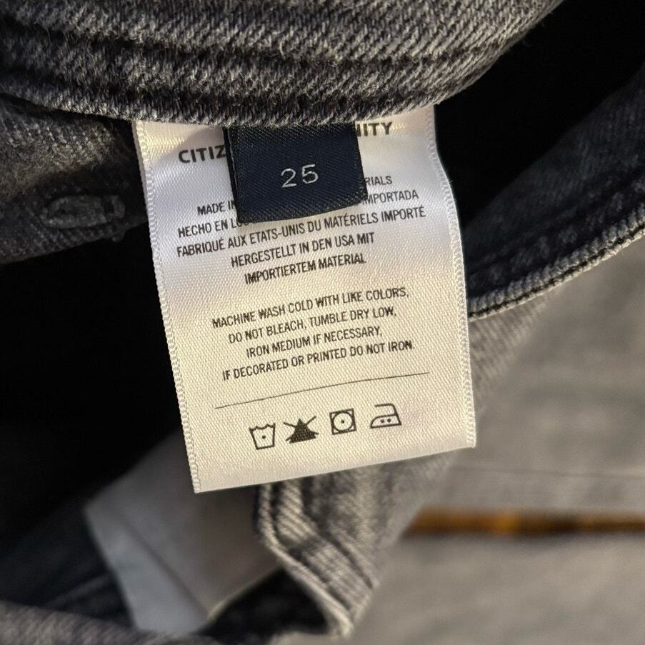Citizen's Of Humanity Women's 25 Jeans Gabriella Flare High Rise Grey Denim Charcoal grey wash. The stock photo is a bit darker than the jeans I'm selling but they're the same style. 98% Cotton 2% Elastane Spandex 26" Waist 30" Inseam Made in USA Crafted from cotton blend denim, the Gabriella has a form-flattering high rise, slim leg and flare silhouette. Complete with vintage inspired detailing, including patch pockets and a lettuce waistband. I don’t use any strongly scented laundry detergents and I have a smoke free home! Thank you for checking out my items. Message me with any questions! 038