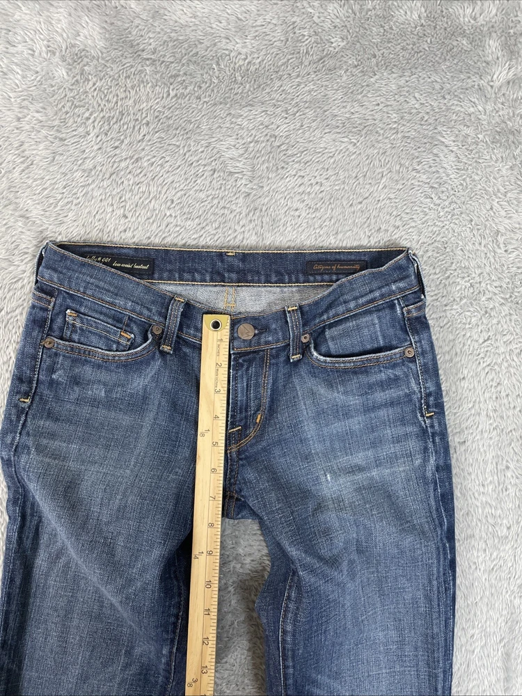 Citizens Of Humanity Jeans Women's 27 Blue Kelly #001 Low Waist Boot - Hemmed Length has been hemmed Waist measures slightly under 29" Worn spot on the hip/thigh CHECK THE MEASUREMENTS. Title only states tag size. Sizes can vary. Condition is used. Good used condition with typical wear. No losses to note. See photos for condition and detail. Please look carefully at all photos. The photos are an important part of the description. If you have questions, please ask. Returns are accepted within 30 days of purchase. The item must be returned in exactly the same condition as received. Items will be inspected, serial numbers checked, etc. Shipping fees are not refundable.