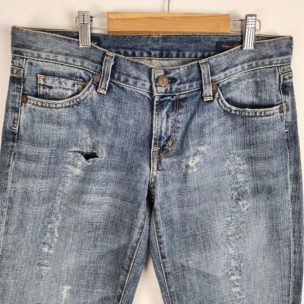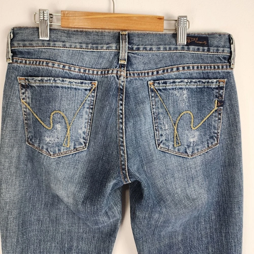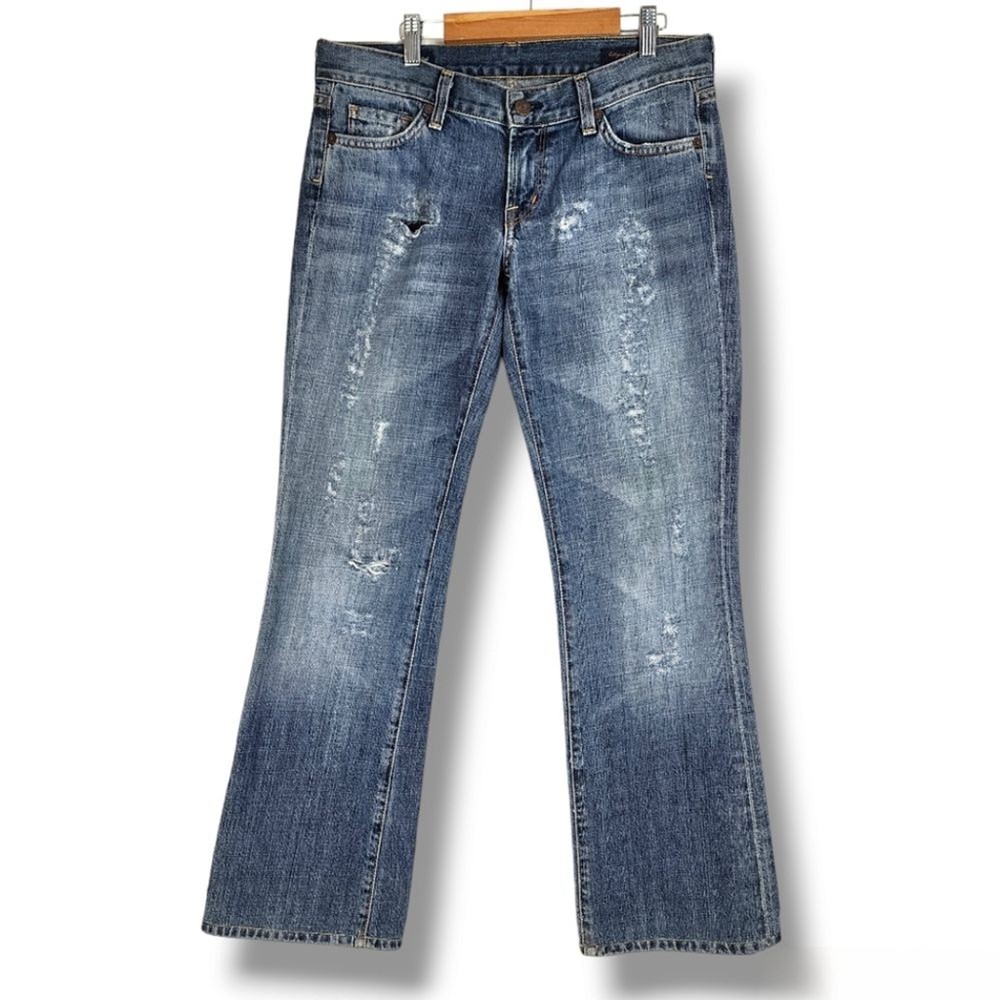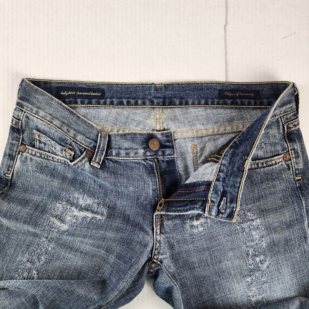 Citizens of Humanity by Jerome Dahan Kelly 001 Low Waist Bootcut Distressed Jeans - Size 29, approx. measurements in pictures - Ripped, Distressed - Low Waist - 100% Cotton - Pre-owned Shipping Same or Next Business Day! Thanks for watching! ripped Jeans Distressed low-waisted low ris3 flare Legs denim casual Party Streetwear retro 70s 90s bohemian hippie casual vintage vibes Elevate your denim game with these Citizens of Humanity Kelly 001 low waist bootcut jeans. The distressed detailing adds a touch of edgy style to the classic blue color, making them a versatile addition to any wardrobe. The jeans are made for women, with a regular size type, and feature a bootcut style that flatters any body type. The Kelly 001 model is known for its high-quality construction and attention to detail, making these jeans a must-have for any denim enthusiast. They are part of the Clothing, Shoes & Accessories category, specifically Women's Clothing and Jeans. Add these jeans to your collection and step out in style.