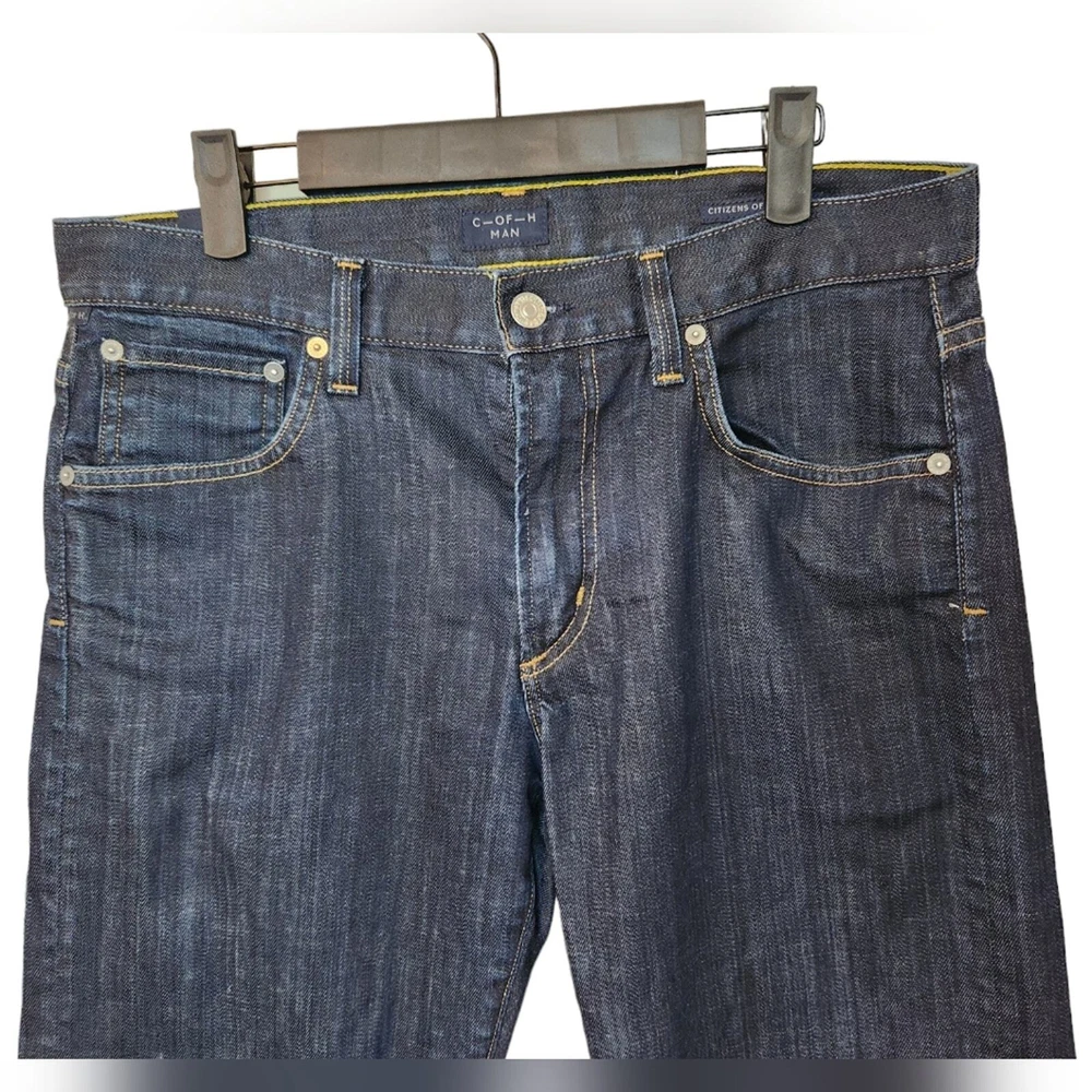Mens Straight fit Sid Jeans from C of H man size 32 excellent condition. no signs of wear Laying flat measurements in inches Waist 17 Rise 10 Inseam 29 jeans from Citizens of Humanity to lend a sleek edge to your denim repertoire. Zip fly, five pockets Contrast stitching, dark wash Straight: fits neatly over the thigh, then straight to the ankle Made in USA