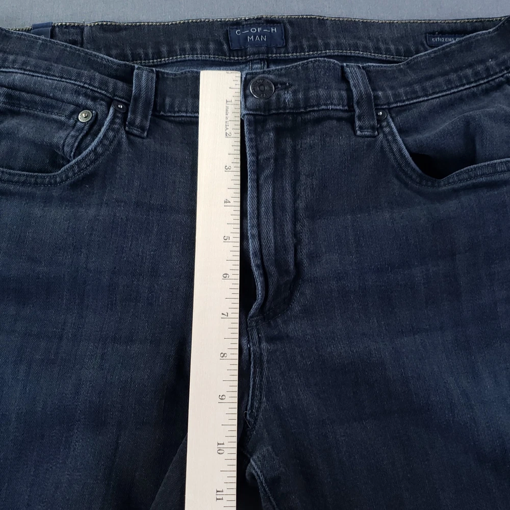 Accents: Logo Seller Notes: “This is a very good condition pair of jeans.” Material: Cotton Blend Style: Straight Country/Region of Manufacture: United States Pattern: Solid Fabric Type: Denim Size: 34 Inseam: 27 in Vintage: No Personalize: No Features: Comfort, Easy Care Waist Size: 32 in Fit: Regular Type: Jeans Fabric Wash: Dark Color: Blue Brand: Citizens of Humanity Size Type: Regular Handmade: No Closure: Button, Zip Department: Men Garment Care: Machine Washable Rise: Mid (10-12 in)