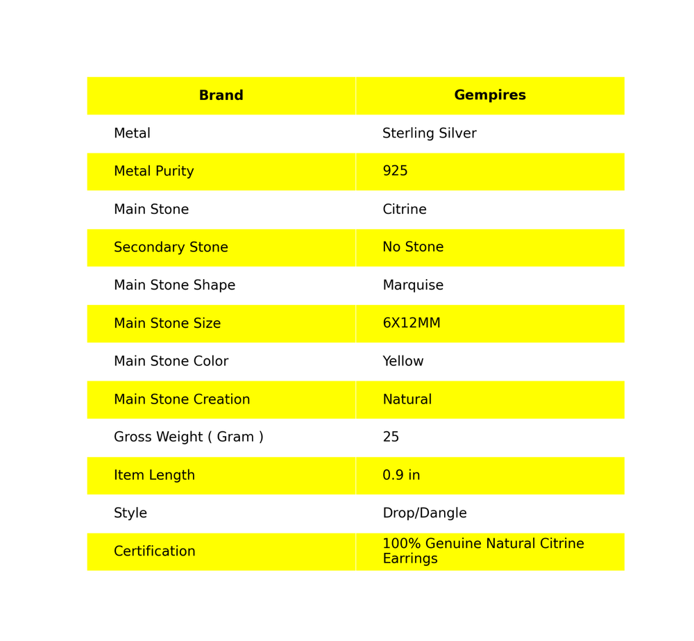 Welcome To Our Shop Gempires ------------------------------------------- It is an exquisite piece of handmade jewelry that enhances appearance and makes a modern statement. The 925 Sterling Silver Earrings presented here is studded with Citrine and will make your look splendid. Citrine Stone Dangle Drop Mother Birthday Bezel New Earrings 925 Sterling Silver Check My Other Earrings Listings : Click Here SKU:- EE-144-3 Metal:- Sterling Silver Metal Purity:- 925 Gemstone:- Citrine Gemstone Color:- Yellow Gemstone Shape :- Marquise Gemstone Creation :- Natural Stone Setting :- Bezel Earring Length:- 0.9 Inches Earring Width:- Inches ___________________________________________________________________ Shipping Handling - Free Standard Shipping all over the world Handling Time - 2 to 5 BUSINESS Days Delivery Time - 7 to 20 Days ( Various on destination ) _________________________________________________________________ Returns - 1.We provide a 100% Money Back Guarantee, excluding shipping costs, within 30 days from the date of item receipt. 2.The item must not be altered or damaged in any way shape or form. 3.Upon receipt of the aforementioned items, your payment will be promptly refunded. 4.Please be so kind as to contact us via email in order to acquire comprehensive return instructions before proceeding with the return of the merchandise. 5.Kindly be advised to allocate a maximum period of 1 business day for the processing of all returns, in order for the appropriate credit to be applied. 6.Sizing does not affect the return policy. _________________________________________________________________ FAQ's - Q.1 ARE THE ITEMS YOU ARE SELLING BRAND NEW? We exclusively offer brand-new products, refraining from the sale of pre-owned jewelry. Our entire jewelry collection is composed of 100% natural, conflict-free pieces. We do not engage in the trade of imitation or lab-grown gemstones and diamonds. Q.2 WHAT ARE YOUR BUSINESS HOURS? we operate 24x7 as we have a dedicated team who works in different shifts to deliver the services to our valuable customers. ________________________________________________________________ Gempires is committed to delivering customers an unparalleled experience through the provision of exquisite handmade jewelry, meticulously crafted to uphold the most exacting standards of quality. Our operations encompass dual roles as both discerning connoisseurs and skilled artisans within the realm of jewelry making. We proudly hold an extensive proficiency in the fine art of enhancing gemstones, allowing us to harmonize them seamlessly with diverse aesthetic inclinations. We are delighted to extend to you the privilege of curating your very own jewelry collection. This collection will be graced by the presence of genuine and splendid natural gemstones, each possessing an innate authenticity and beauty that is truly unparalleled. **** STAY BLESSED ALWAYS*****