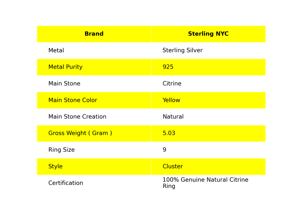 Welcome to Sterling NYC Birthday Gift For Her Natural Citrine Gemstone Cluster Ring Size 9 925 Silver Handmade Ring, Sterling Silver Ring, Citrine Ring, Handcrafted Ring Specifications:- SKU : JS-42883 Gemstone : Citrine Stone Shape : As Seen In Picture Metal Purity : 925 Sterling Silver Ring Size : 9 US Adjustable : ----------------------------------------------------------------------------------------------------- Experience the timeless allure of silver jewelry, a cherished choice known for its exceptional properties and countless rewards. Explore the captivating charm of its unique attributes, enveloping you with elegance and remarkable healing qualities. Immerse yourself in the enigmatic world of silver, where beauty and benefits harmoniously intertwine. Benefits: Embrace the Elegance : Silver jewelry seamlessly blends accessible luxury with timeless beauty, elevating any jewelry collection without the need for extravagant spending. A Mindful Companion : Adorn yourself with silver jewelry as a gentle nudge towards mindfulness, a tangible reminder to cherish the beauty of every moment. Amplify Positivity : Silver, known for its energy-conducting qualities, is thought to enhance the power of positive intentions and affirmations, aiding in the clear manifestation of your desires. Unleash Self-Expression : Silver jewelry, with its versatile designs, empowers individuals to express their unique style, allowing their personality to shine through every piece. Soothing Serenity : Silver's cooling properties are believed to have a therapeutic effect, bestowing a sense of relief and tranquility upon both body and mind. ----------------------------------------------------------------------------------------------------- For Mother's Day Gift For Father's Day Gift For Promise For Valentine' Day For Halloween Party For Christmas Day Gift For New Year Party For Mom For Her ----------------------------------------------------------------------------------------------------- Discover the impeccable designs tailored just for you, and receive personalized guidance by reaching out to us. Our skilled artisans meticulously handcraft each piece in our workshop, infusing them with love and unwavering attention to detail. Your visit holds immense significance to us, and we are committed to ensuring that your shopping experience is nothing short of exceptional. Thank you for choosing us; we sincerely hope you thoroughly enjoy your shopping journey. Happy shopping! ----------------------------------------------------------------------------------------------------- At SterlingNYC, exquisite craftsmanship meets premium sterling silver gemstone jewelry. Our handcrafted pieces reflect authenticity and uniqueness, a testament to our commitment to excellence. Explore our collection and create your own dazzling jewelry ensemble.