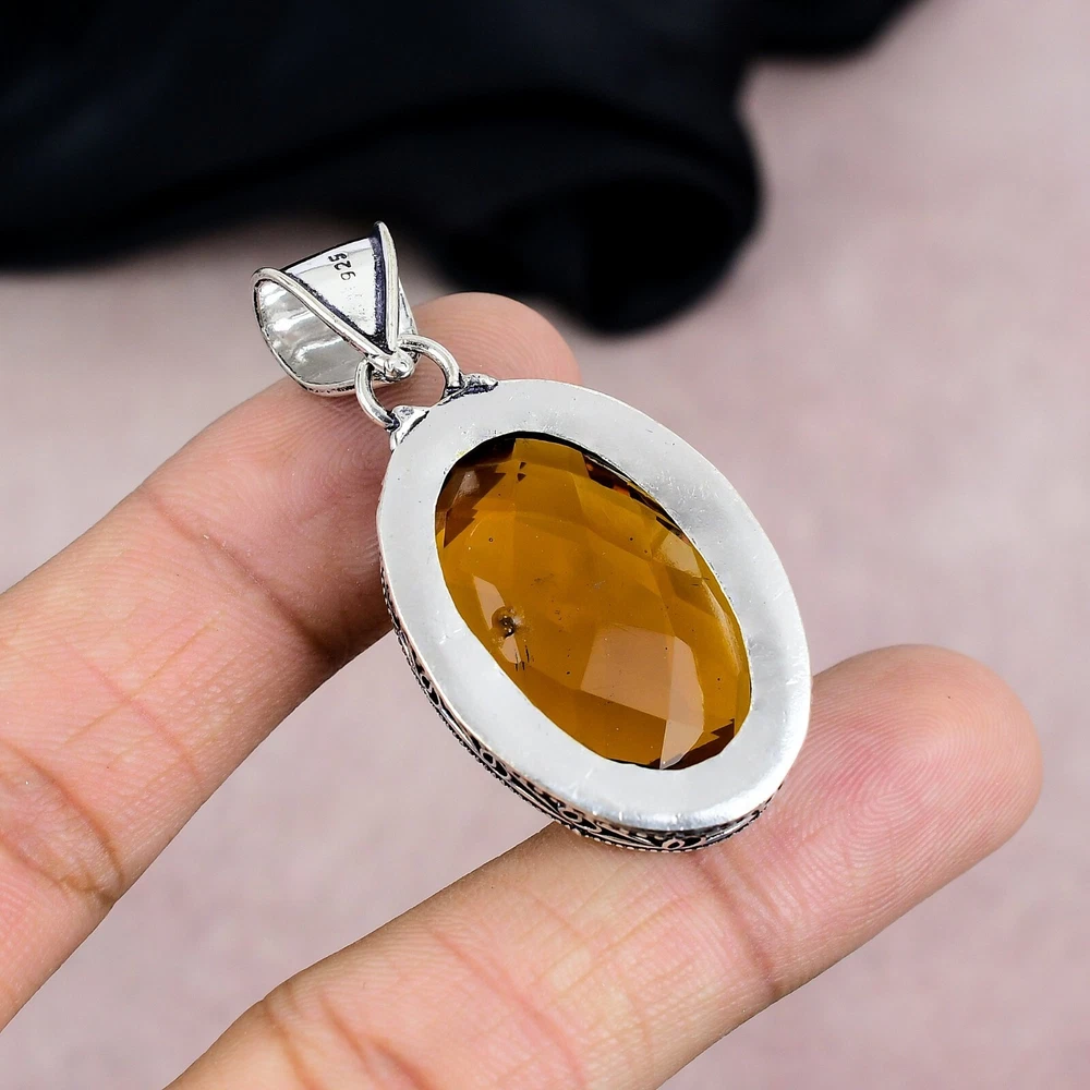 HomeCitrine Gemstone Pendant in 925 Sterling Silver Handmade Gift Jewelry